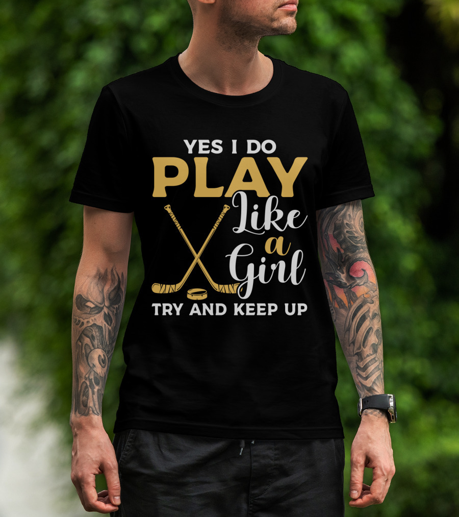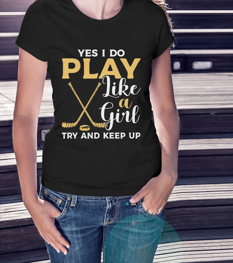 Yes I Do Play Like A Girl Try To Keep Up Hockey Sticks Puck T-Shirt