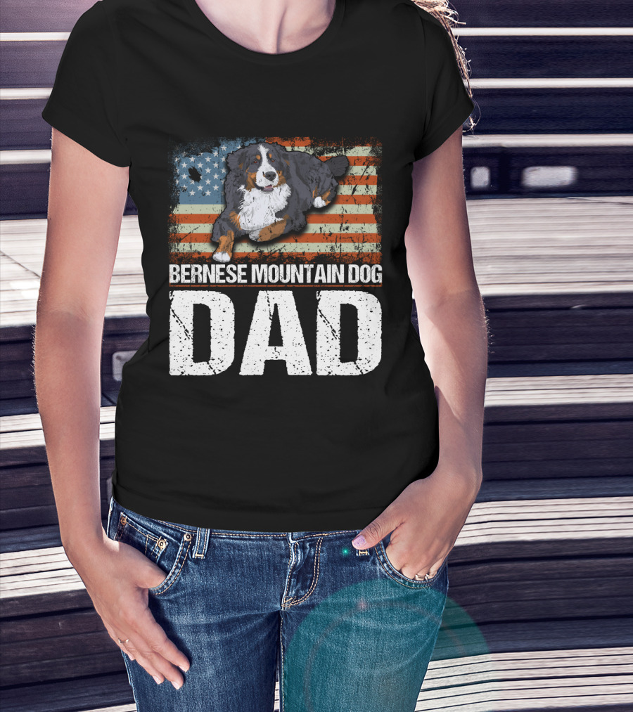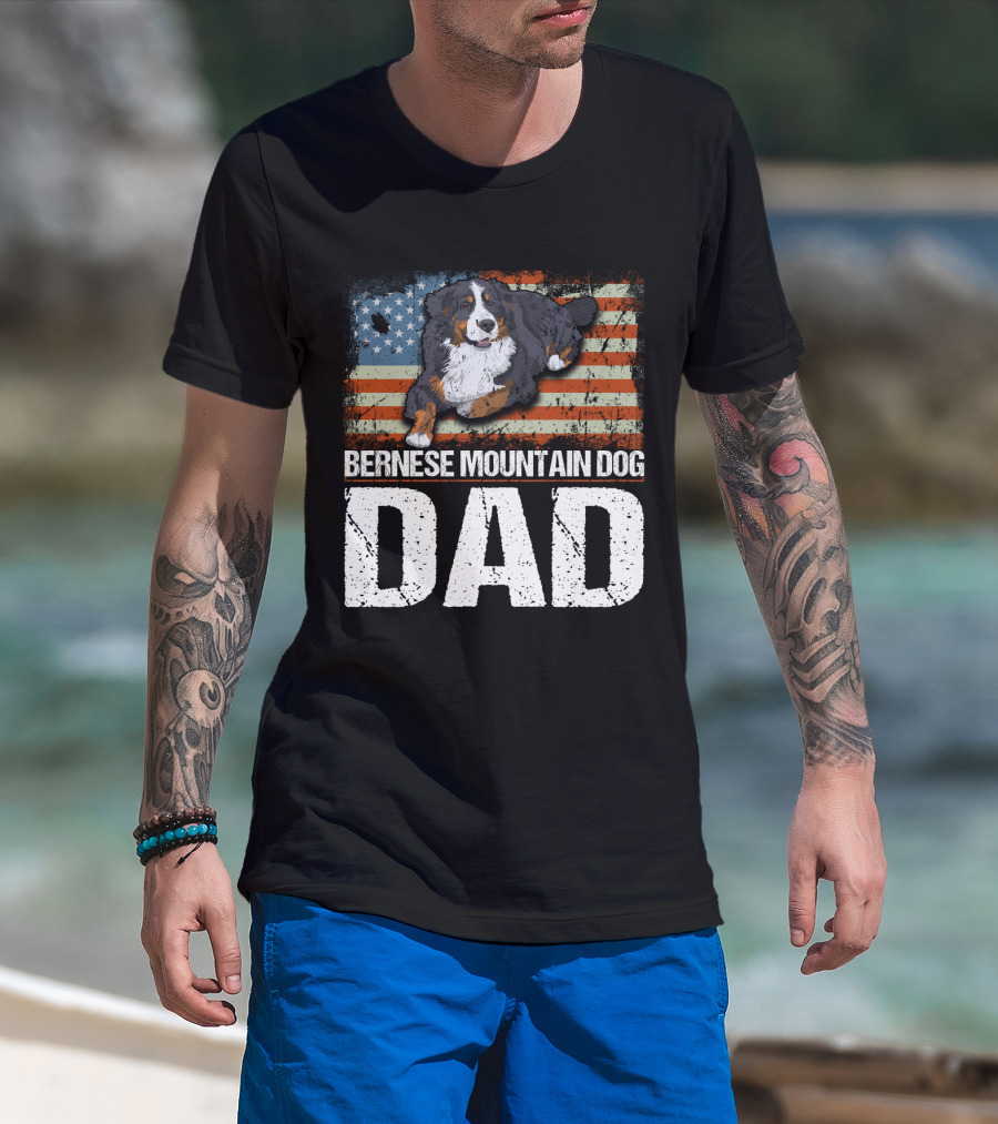 Bernese Mountain Dog Dad American Flag Patriotic Canine Pride T-Shirt