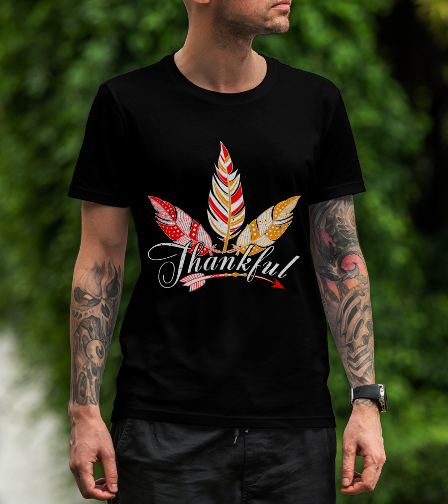 Thankful With Feather And Arrow Colorful Fall T-Shirt