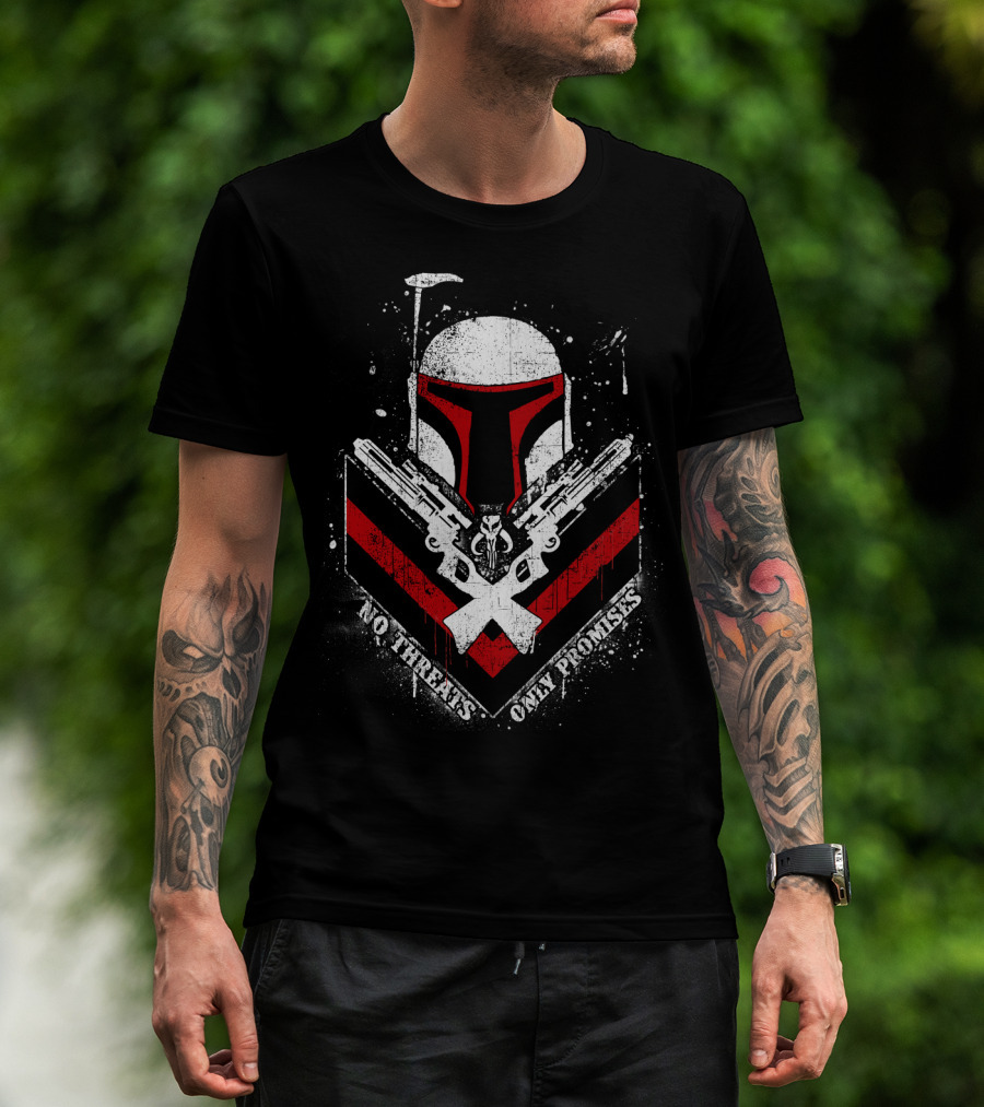 No Threats Only Promises Boba Fett Star Wars Helmet With Blasters T-Shirt
