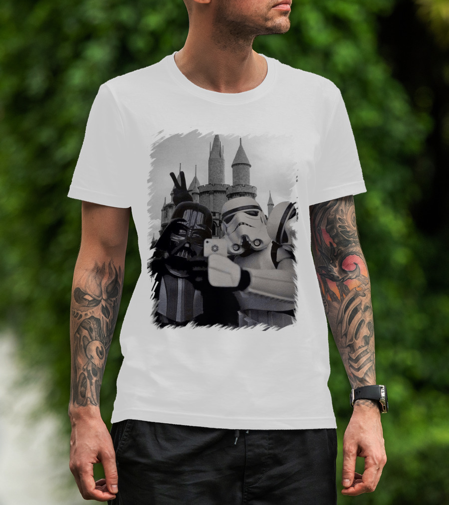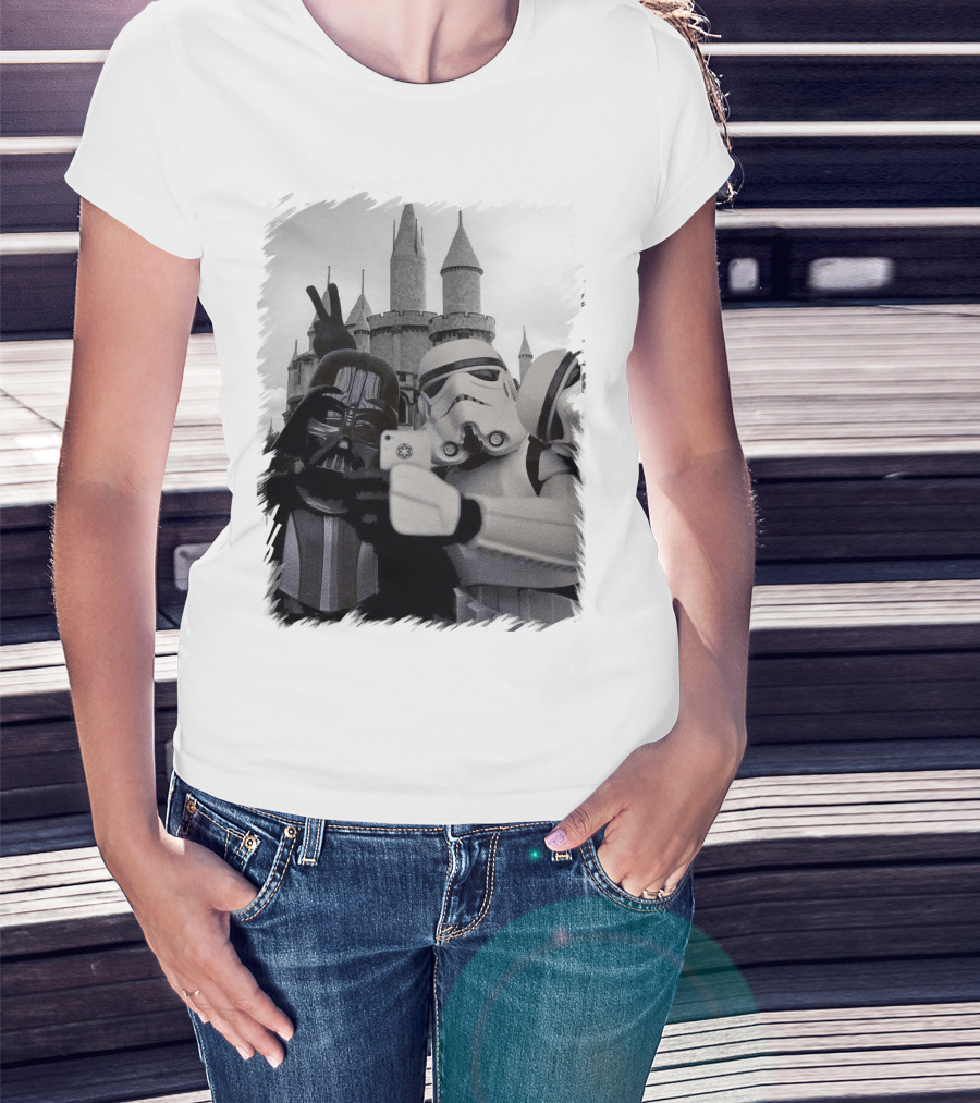 Selfie With Darth Vader And Stormtroopers At Disneyland Castle Star Wars T-Shirt