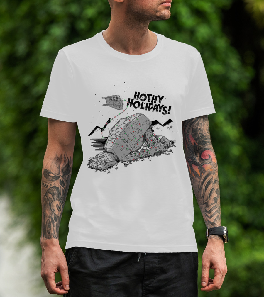 The Hothy Holidays Star Wars AT-AT With Christmas Lights T-shirt is designed for everyday wear and a consistent fit. Fabric is pre-shrunk ring-spun cotton with durable stitching. See the size chart below for exact measurements.