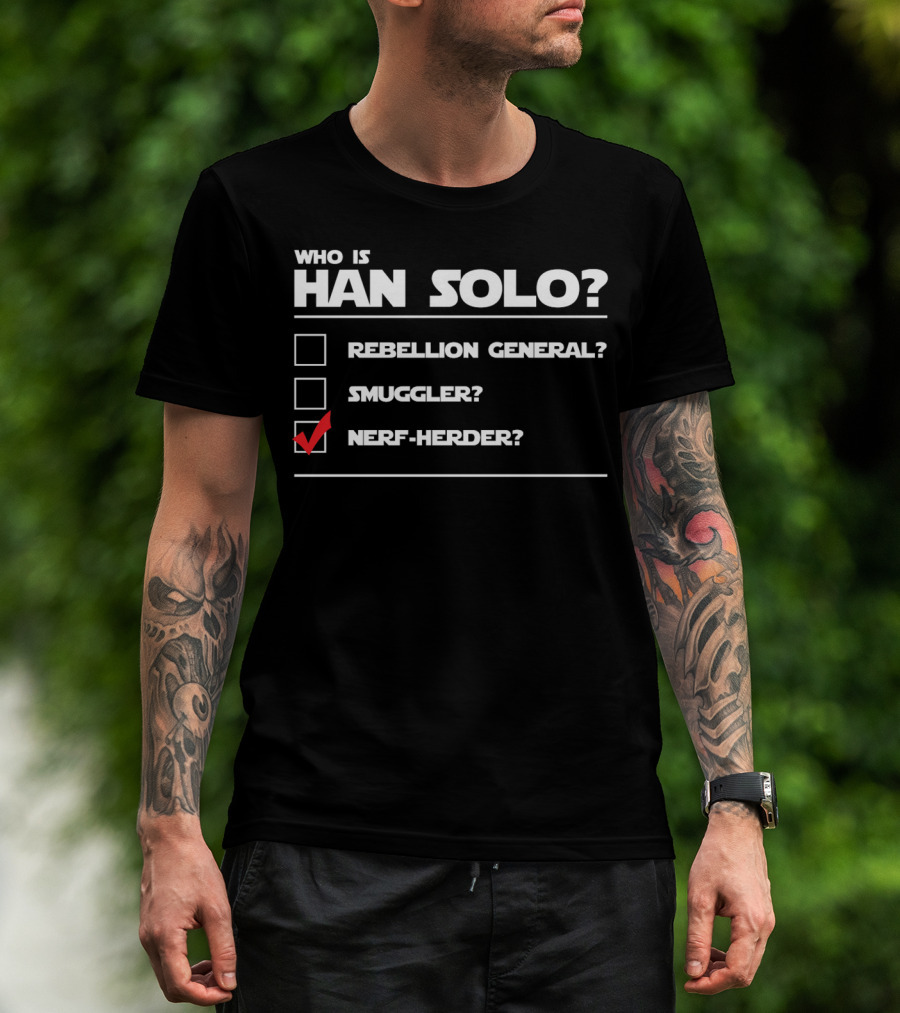 Han Solo Star Wars Who Is Han Solo Rebellion General Smuggler Nerf-Herder T-Shirt