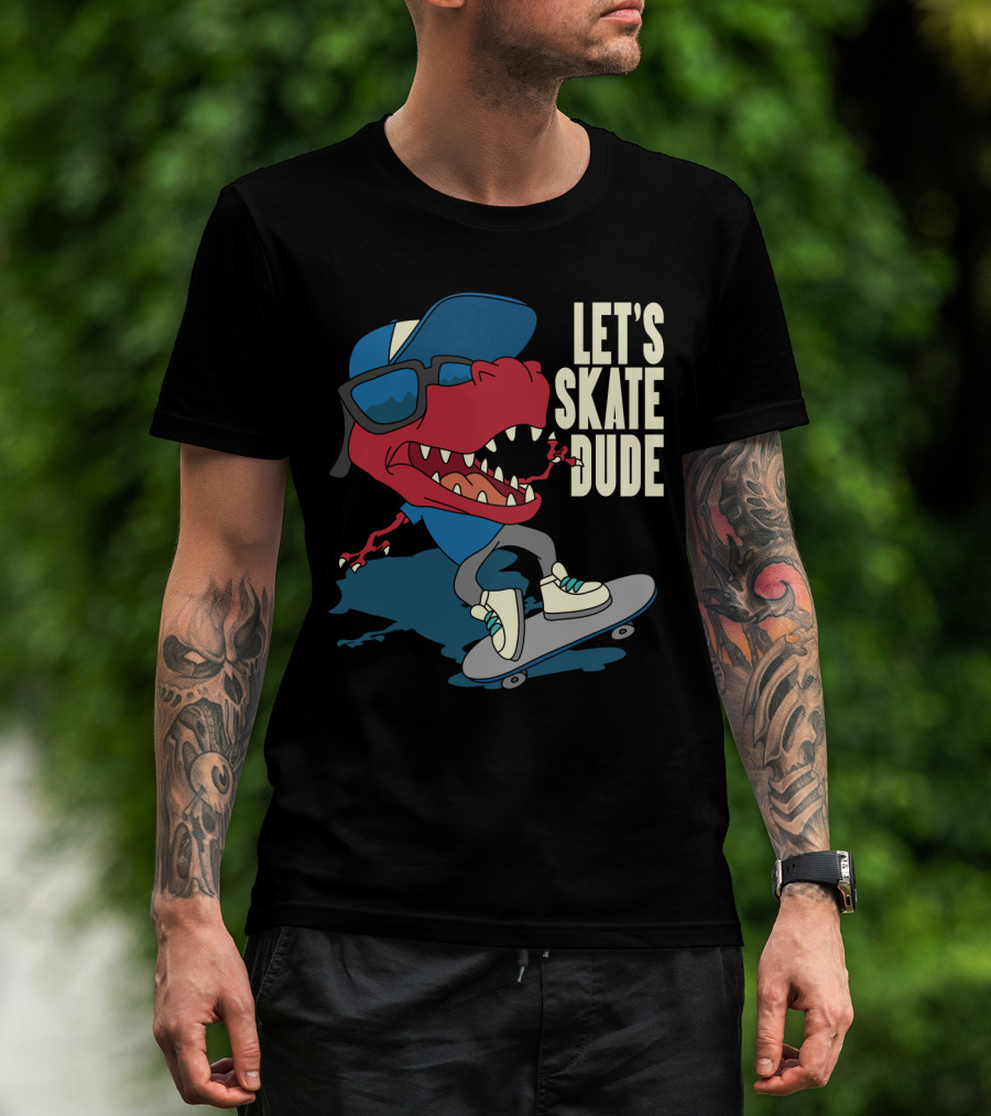 LET'S SKATE DUDE T-REX WITH CAP AND SUNGLASSES ON SKATEBOARD T-Shirt