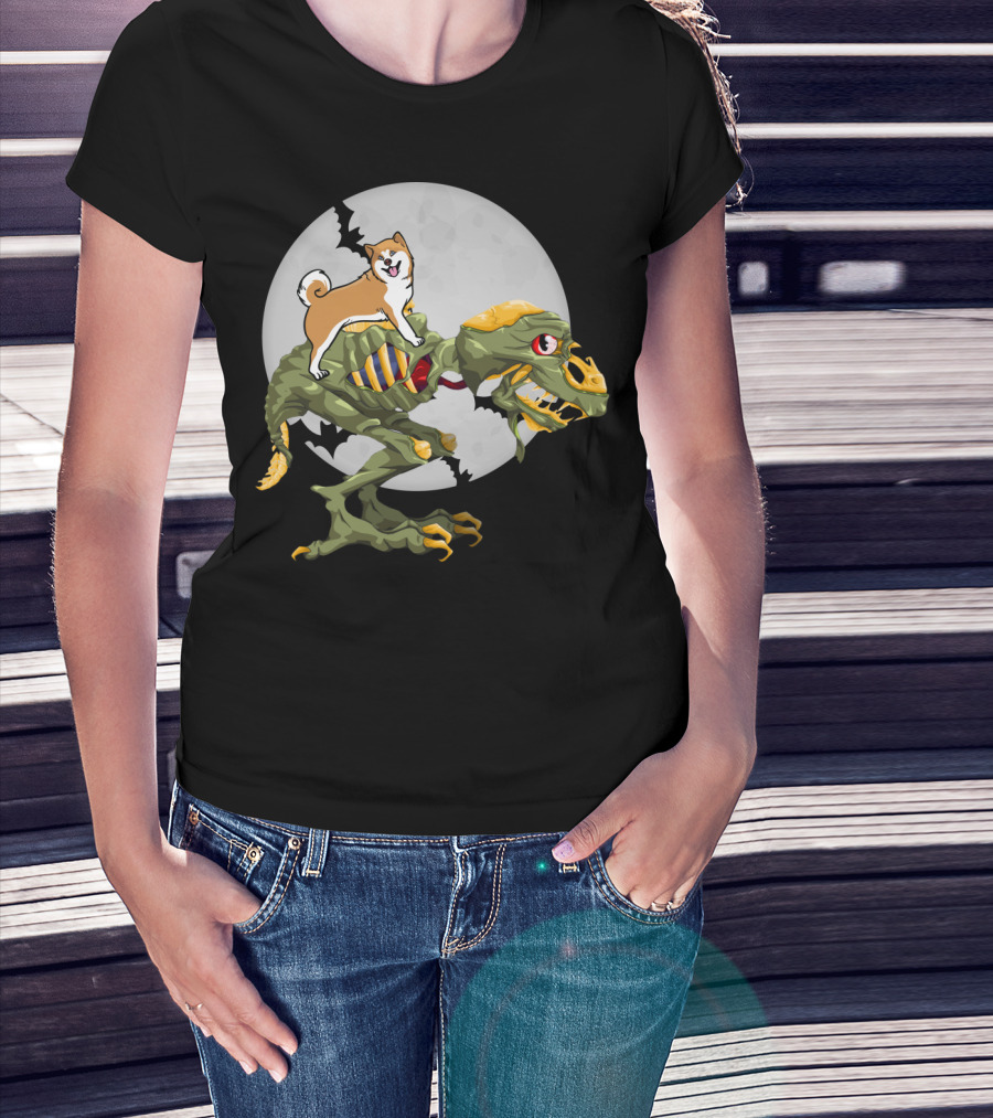 How much will this Akita Riding Dinosaur Skeleton Under Full Moon with Bats shirt shrink?