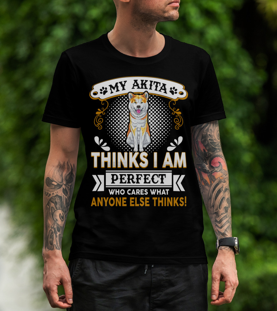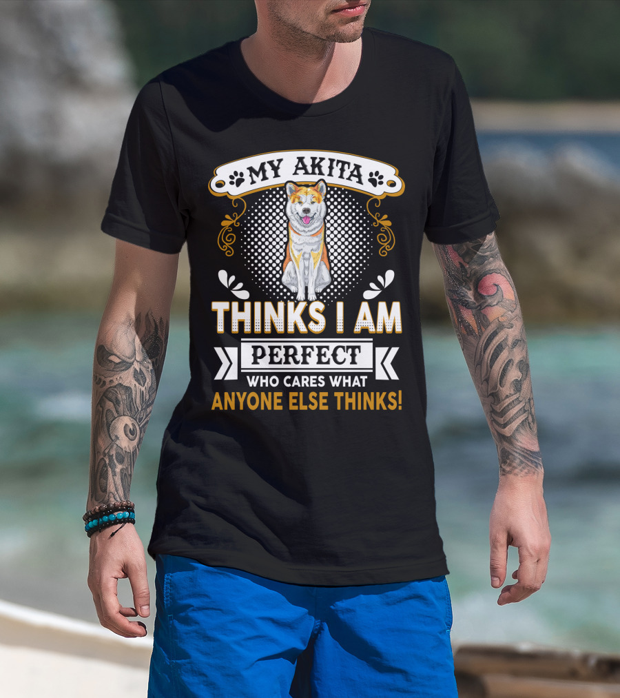 My Akita Thinks I Am Perfect Who Cares What Anyone Else Thinks T-Shirt