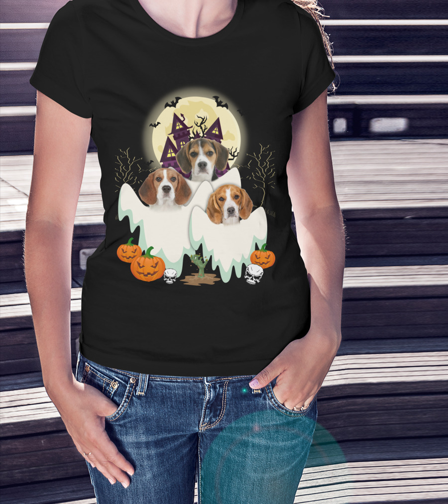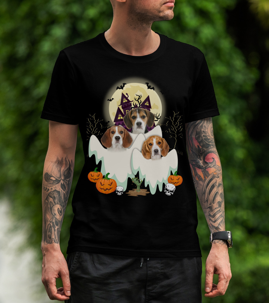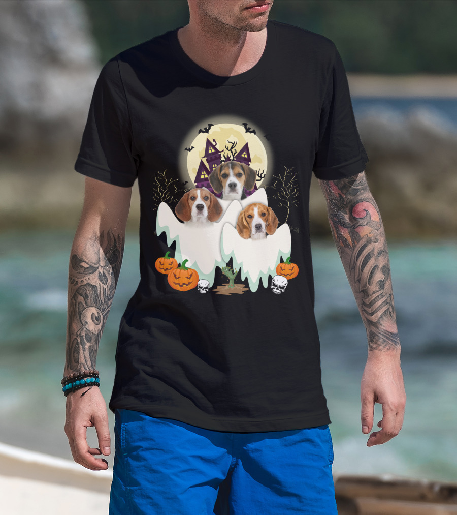 Beagle Halloween Ghosts Haunted House Pumpkins Bats Moon T-Shirt