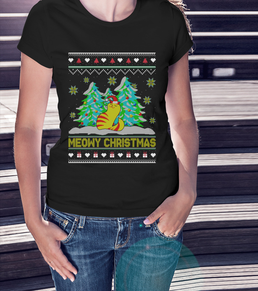 Meowy Christmas Cat Lover Ugly Christmas T-Shirt