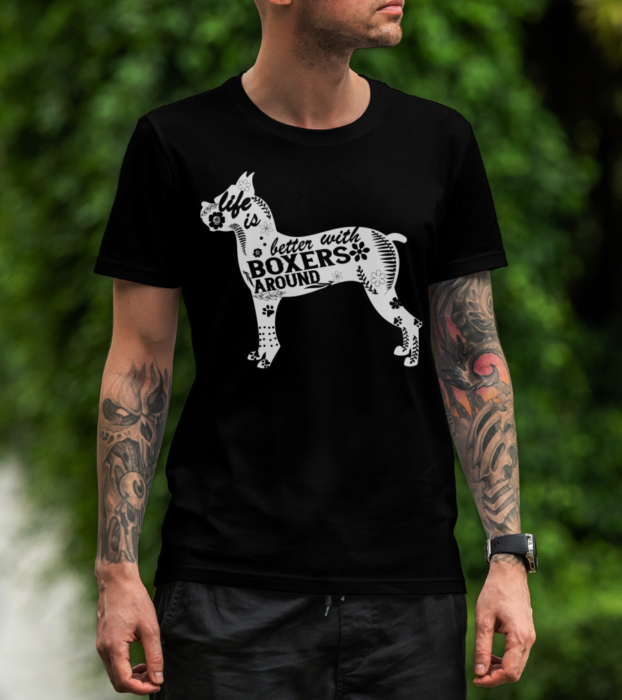 Life Is Better With Boxers Around Floral Dog Pawprint T-Shirt