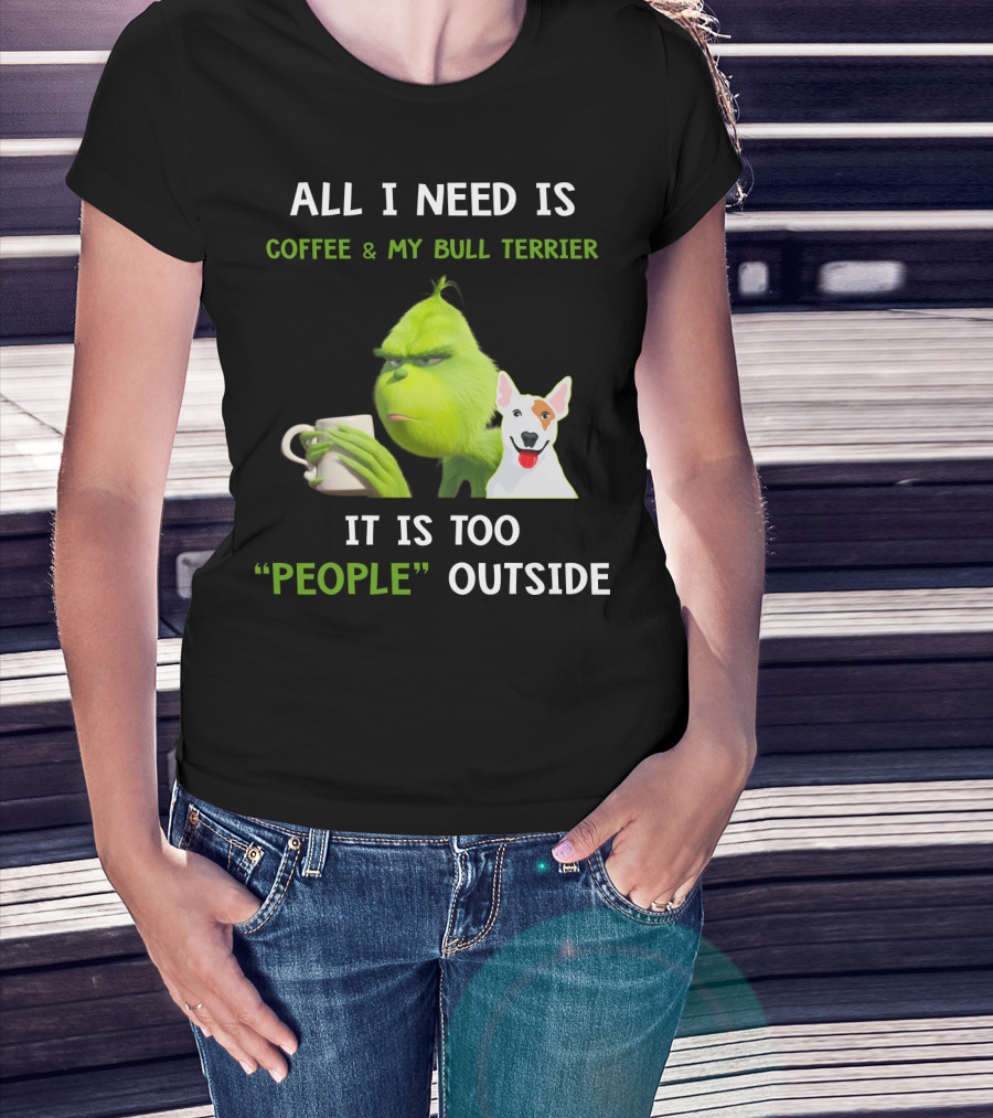 ALL I NEED IS COFFEE And MY BULL TERRIER IT IS TOO PEOPLE OUTSIDE T-Shirt