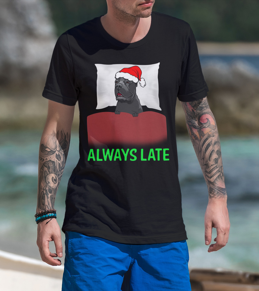 Cane Corso Always Late With Santa Hat T-Shirt