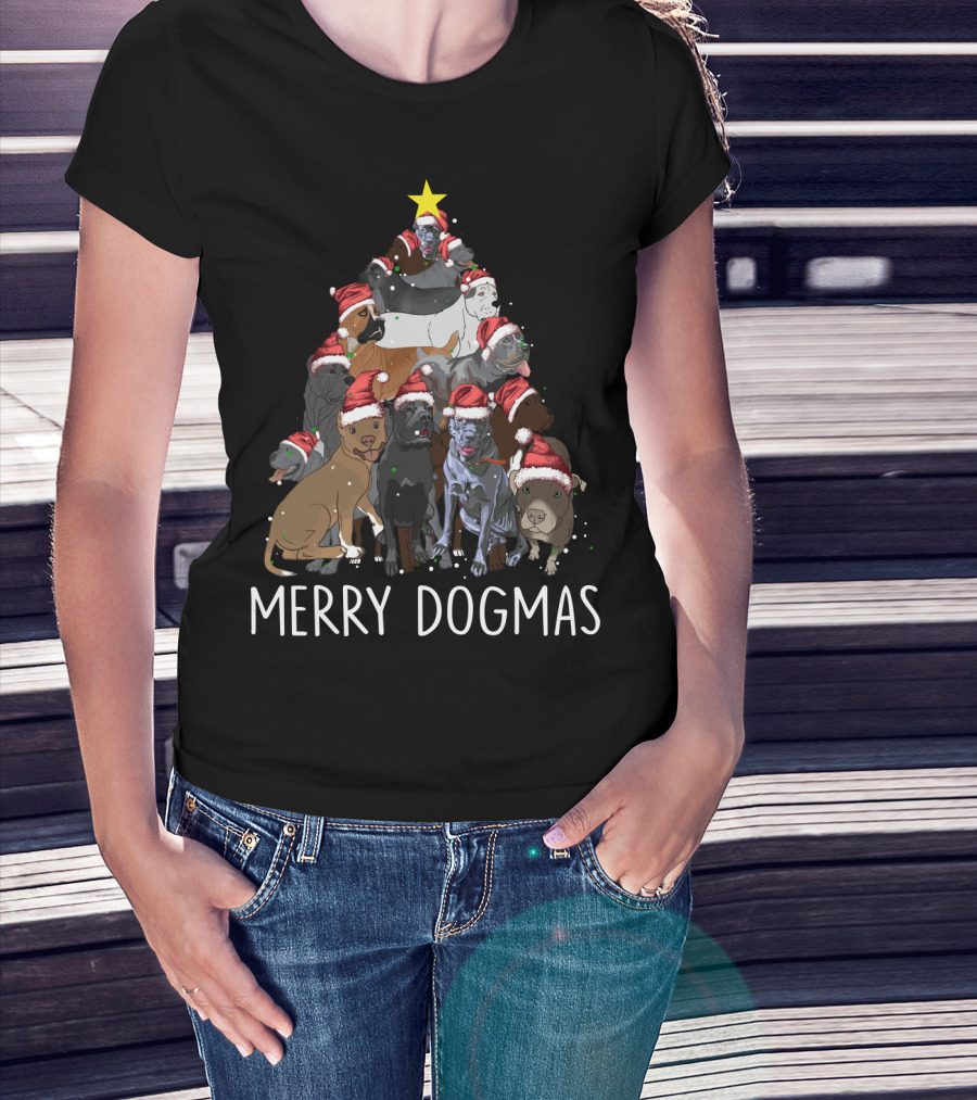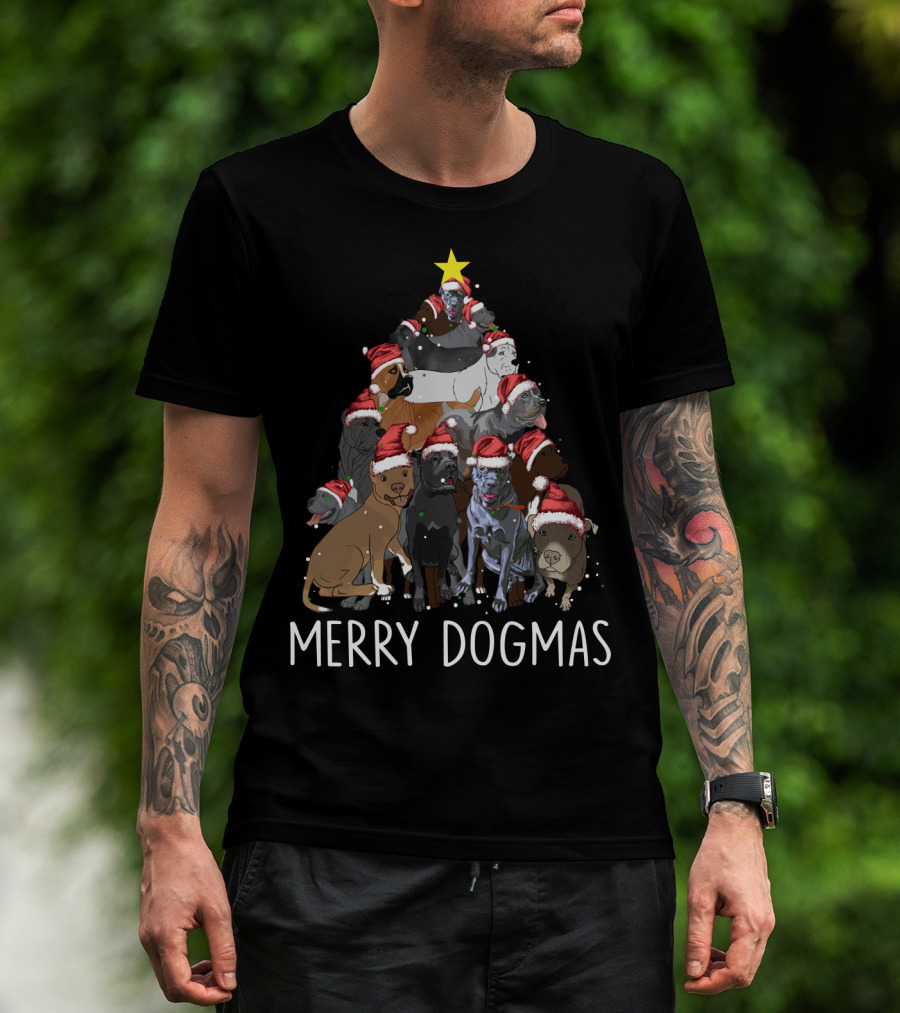 Merry Dogmas Cane Corso Christmas Tree With Santa Hats T-Shirt