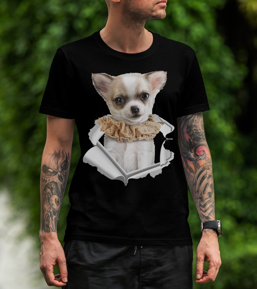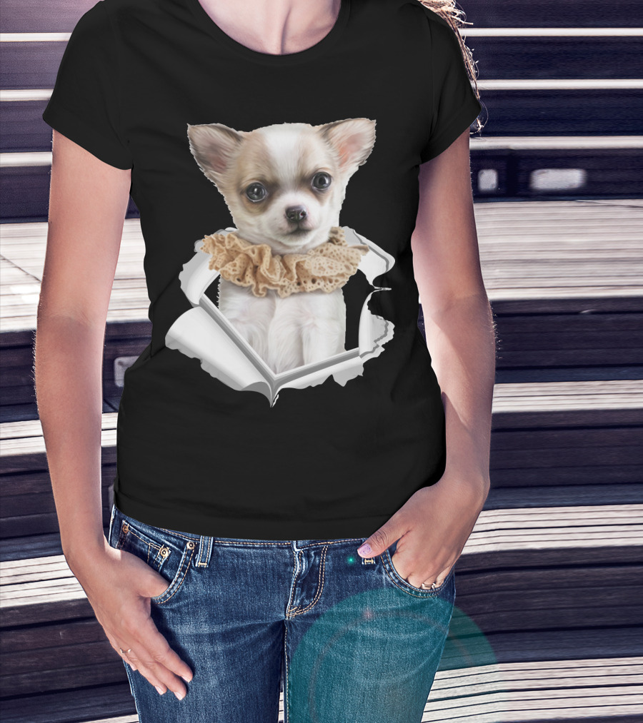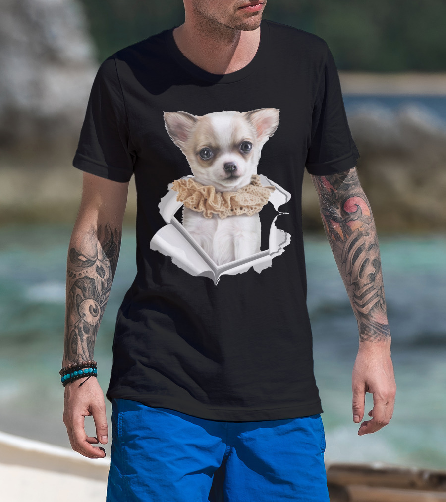 Chihuahua 3D Peek Out Frill Collar T-Shirt