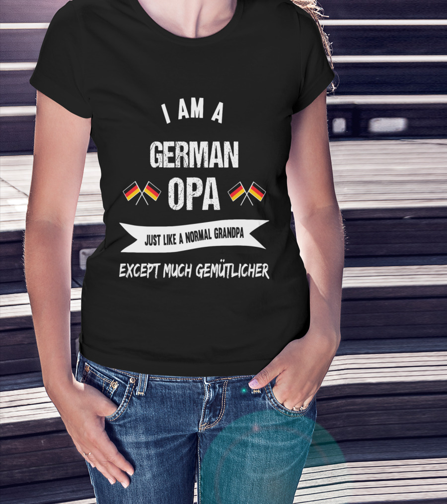 The I Am A German Opa Just Like A Normal Grandpa Except Much Gemütlicher German Flags T-shirt is designed for everyday wear and a consistent fit. Fabric is pre-shrunk ring-spun cotton with durable stitching. See the size chart below for exact measurements.