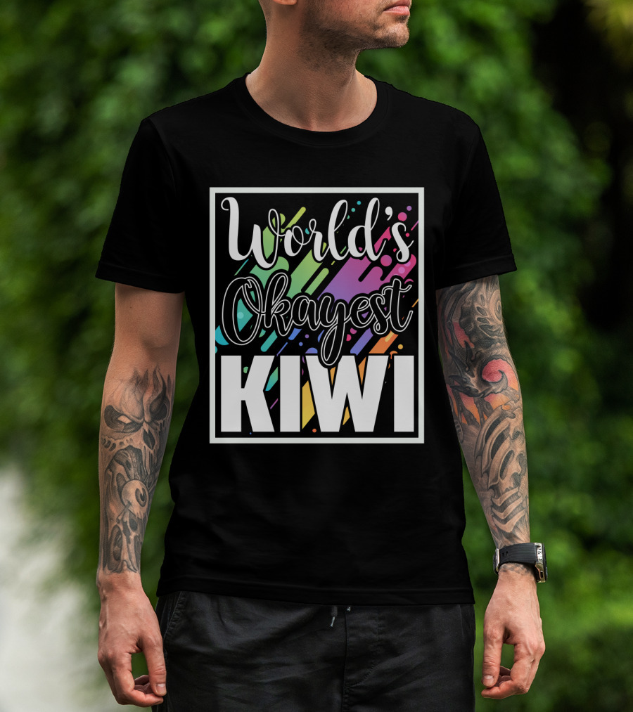 World's Okayest Kiwi Colorful Rainbow Stripes T-Shirt
