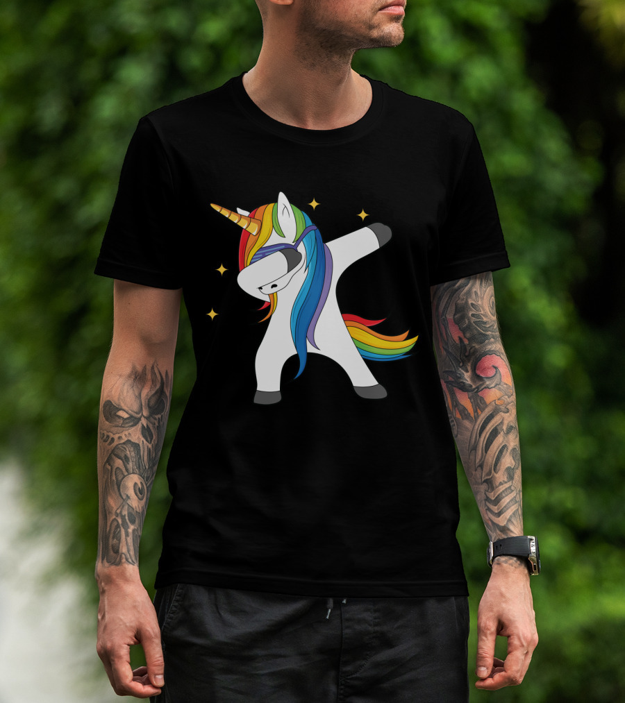 Unicorn Dabbing With Rainbow Mane And Stars T-Shirt