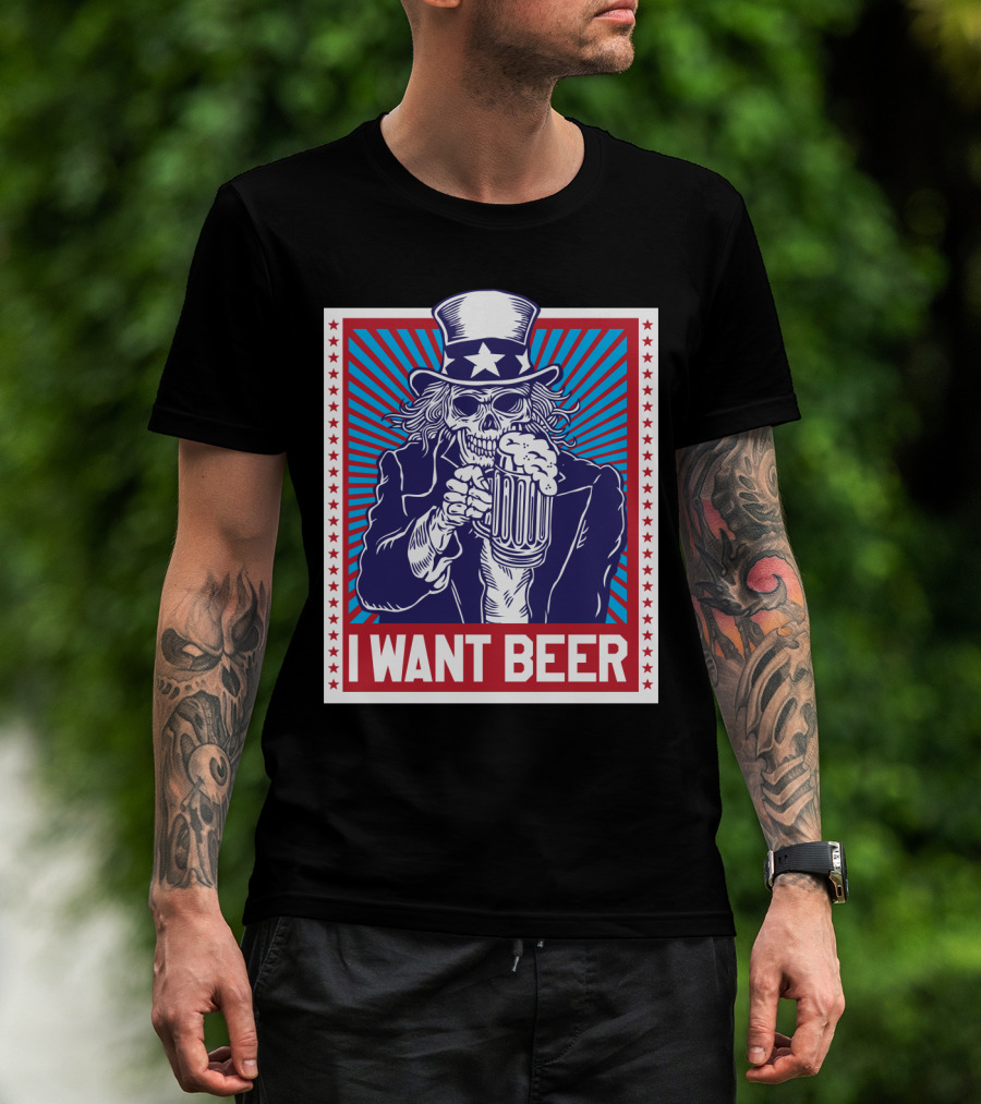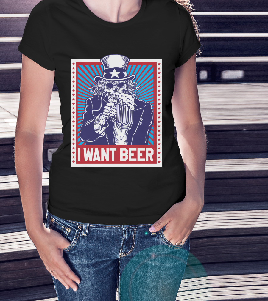 Uncle Sam Skull I Want Beer T-Shirt
