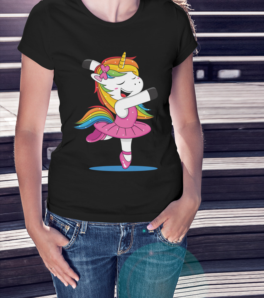 Unicorn Ballet Rainbow Dancer With Pink Tutu And Flower Bow T-Shirt