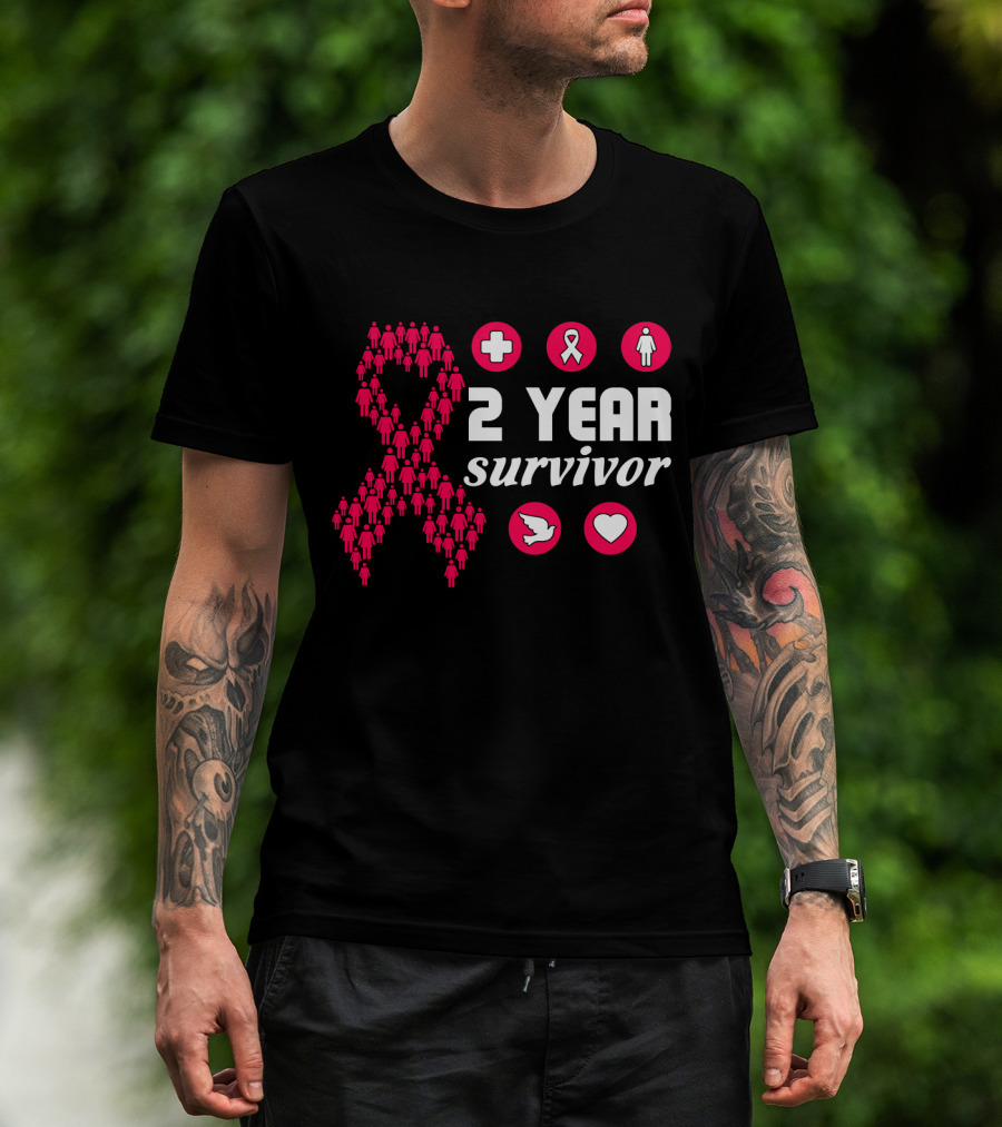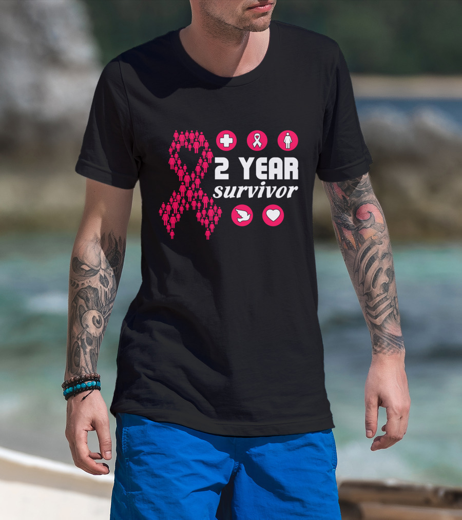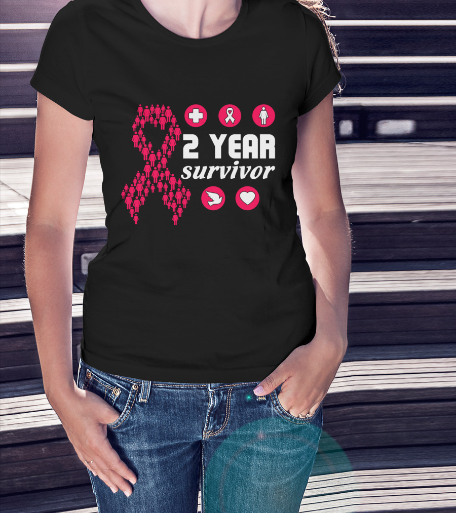 2 Year Survivor Pink Ribbon Breast Cancer Awareness Icons T-Shirt
