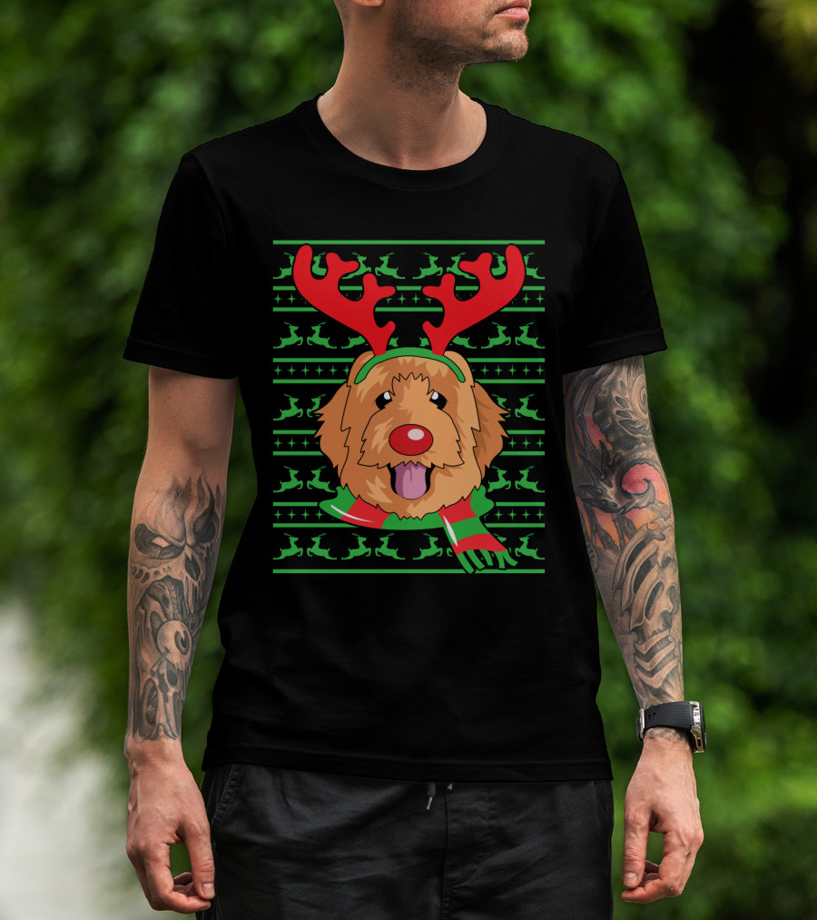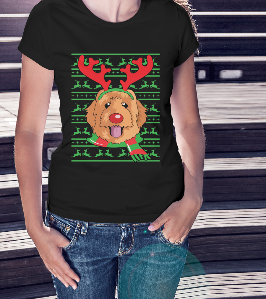 Golden Doodle Reindeer Christmas Scarf And Antlers T-Shirt