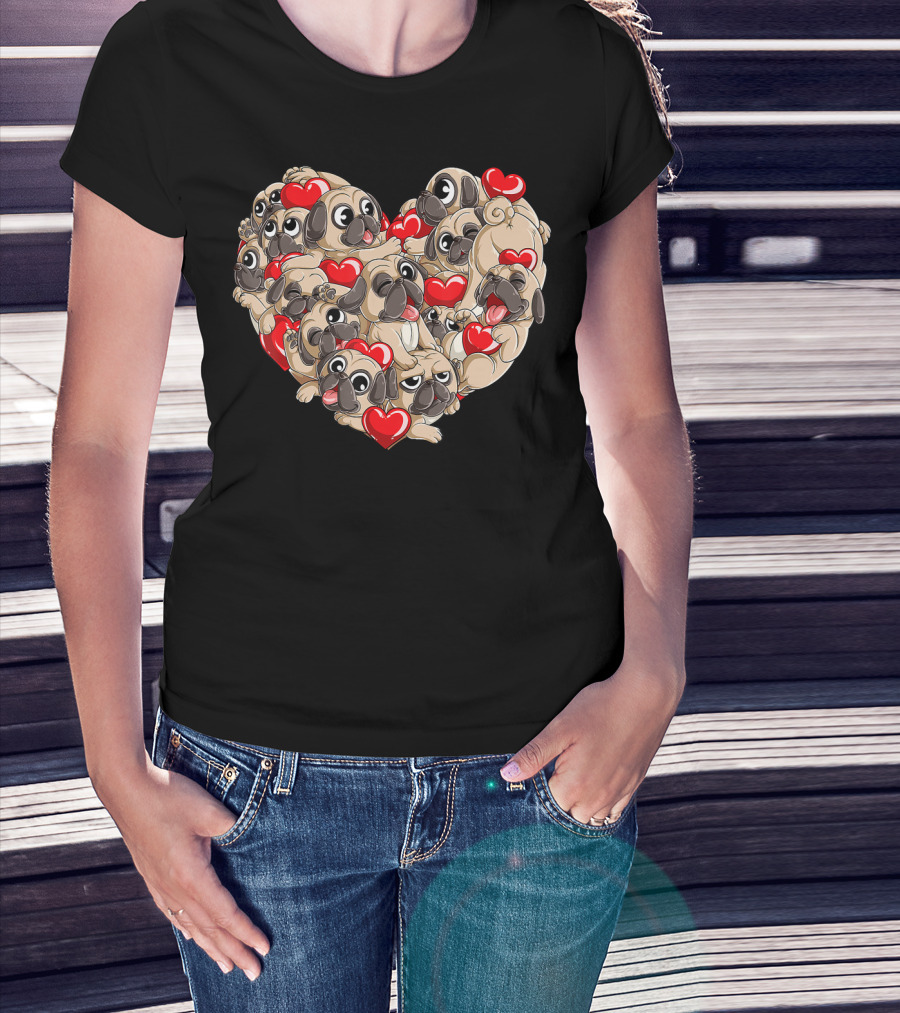 The Pug Heart Valentines Day Dog Lover Boys Men Love T-shirt is designed for everyday wear and a consistent fit. Fabric is pre-shrunk ring-spun cotton with durable stitching. See the size chart below for exact measurements.