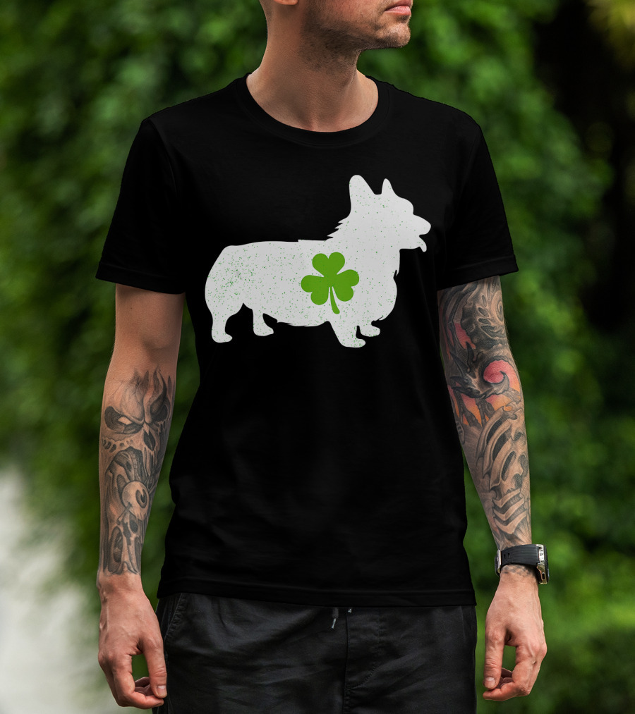 Corgi Silhouette With Green Clover Irish T-Shirt