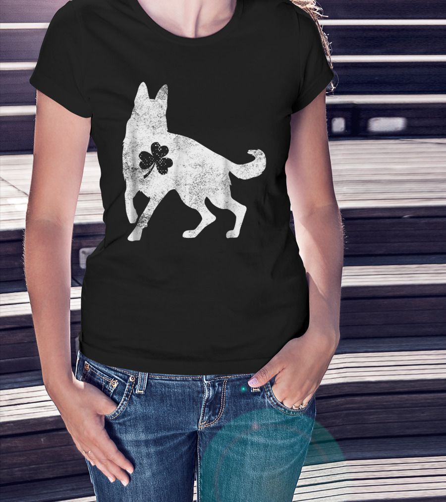 German Shepherd Silhouette Irish Clover St Patrick's Day Dog T-Shirt