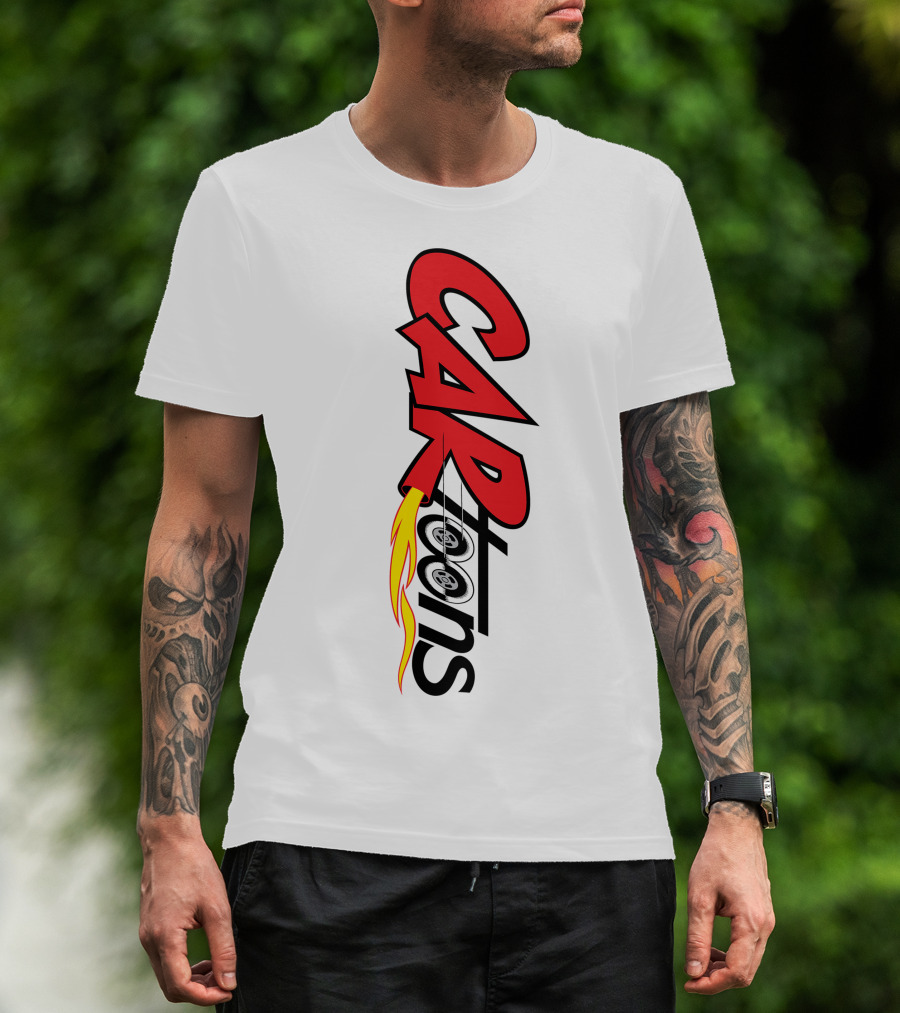 The CARTOONS Red and Black Text with Flames and Wheel T-shirt is designed for everyday wear and a consistent fit. Fabric is pre-shrunk ring-spun cotton with durable stitching. See the size chart below for exact measurements.