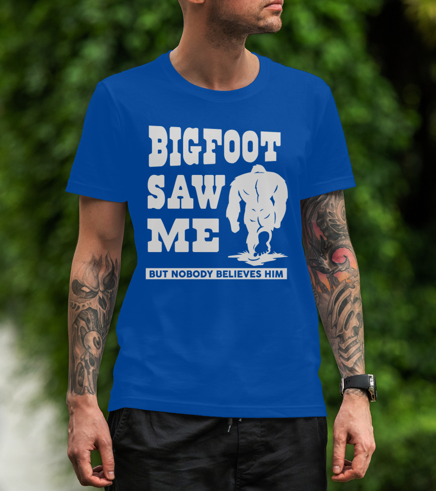 The BIGFOOT SAW ME BUT NOBODY BELIEVES HIM T-shirt is designed for everyday wear and a consistent fit. Fabric is pre-shrunk ring-spun cotton with durable stitching. See the size chart below for exact measurements.
