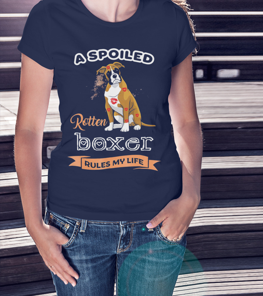 A Spoiled Rotten Boxer Covered In Kisses Rules My Life T-Shirt