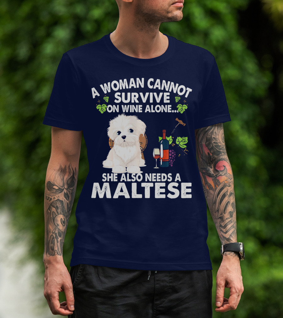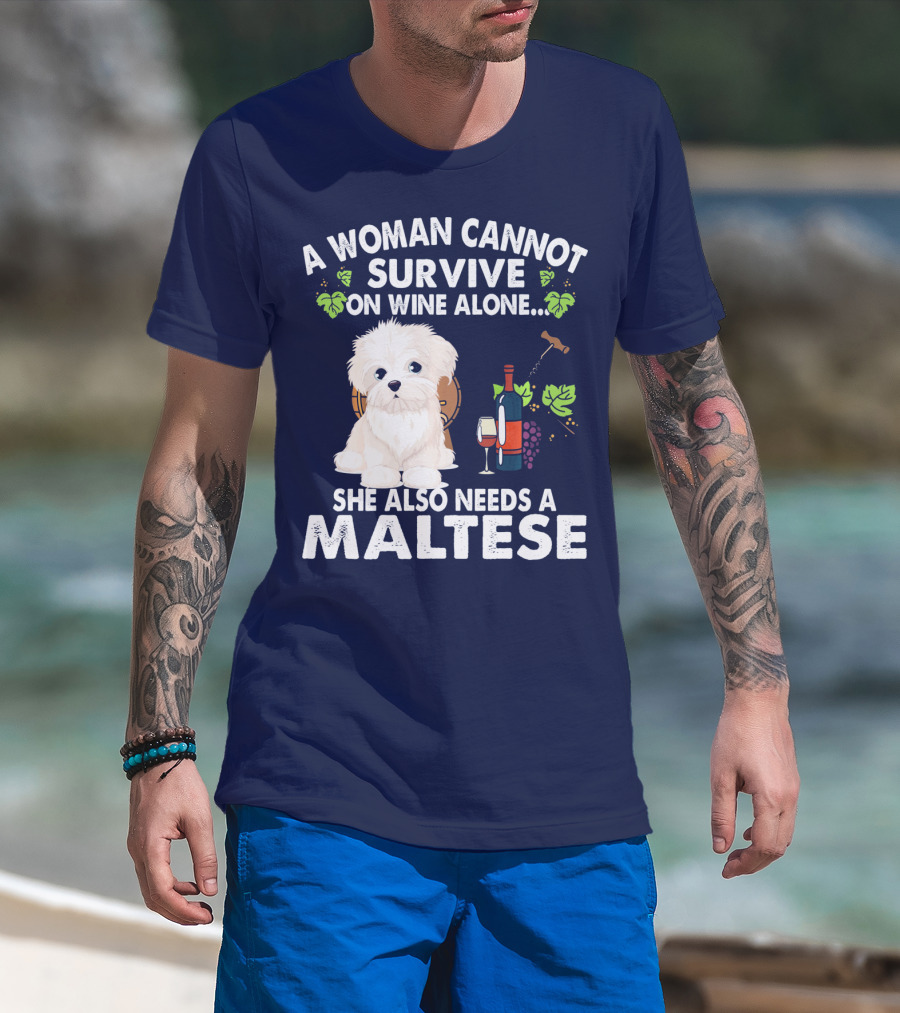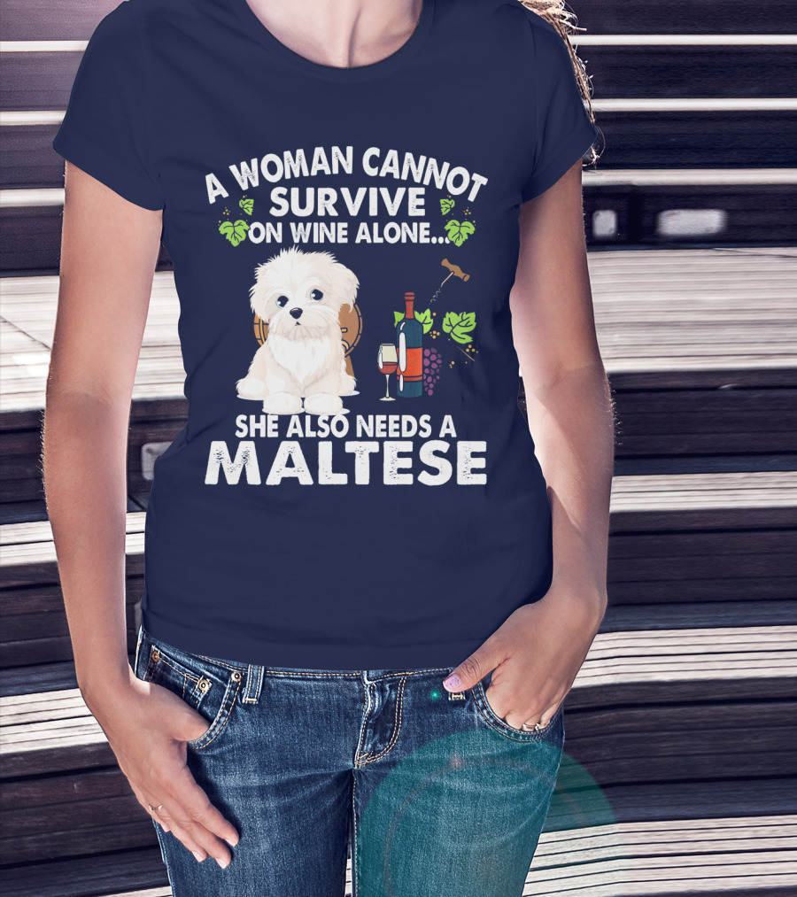 A Woman Cannot Survive On Wine Alone She Also Needs A Maltese T-Shirt