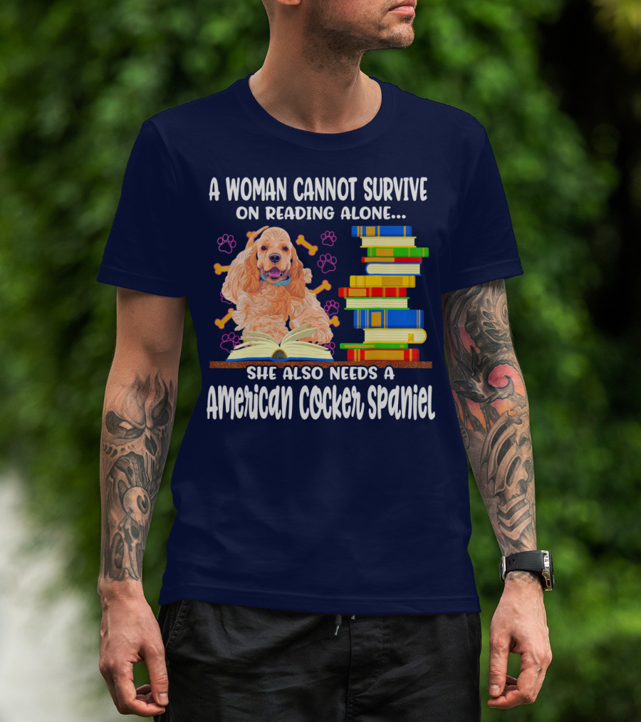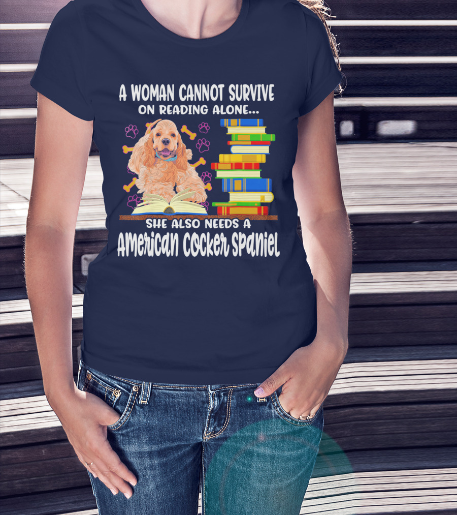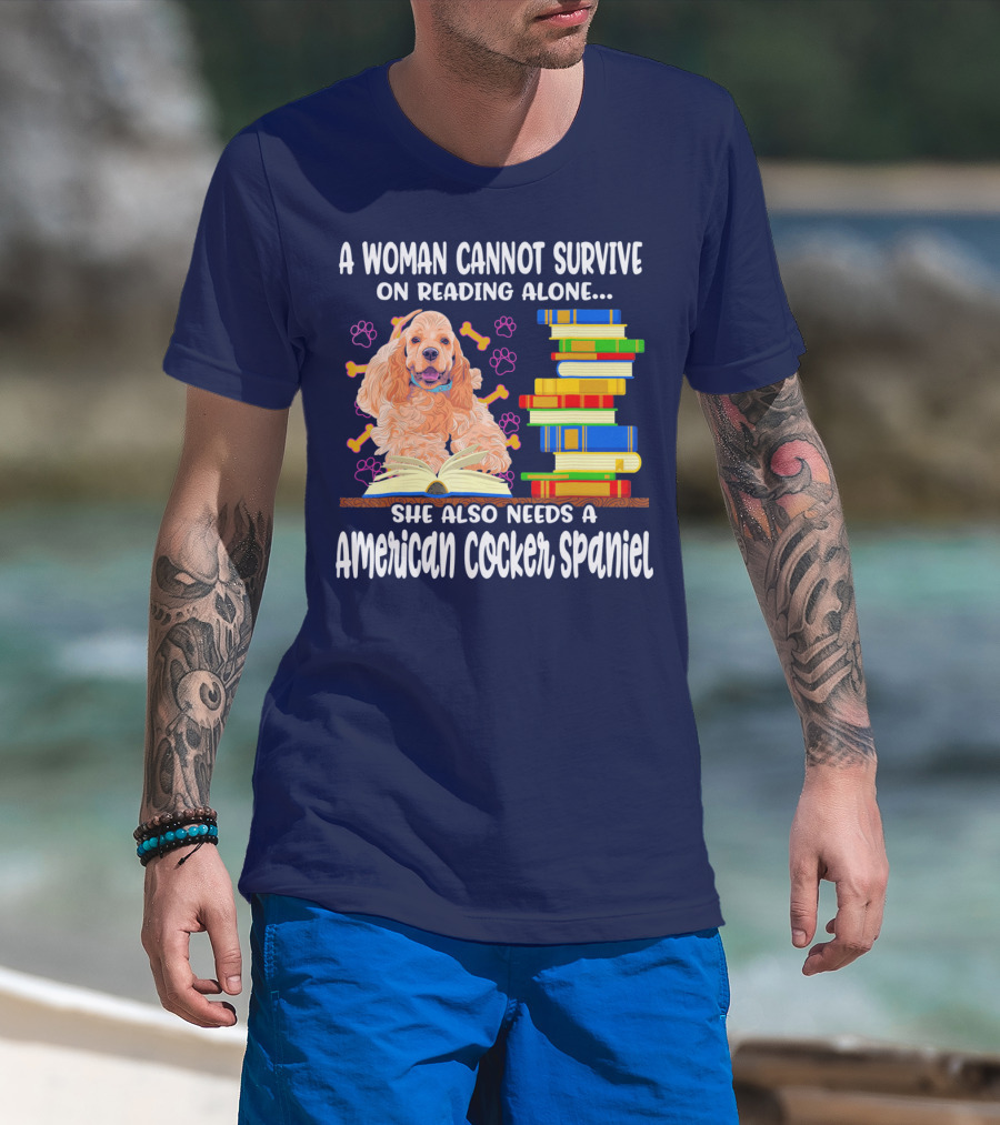 A Woman Cannot Survive On Reading Alone She Also Needs A American Cocker Spaniel T-Shirt