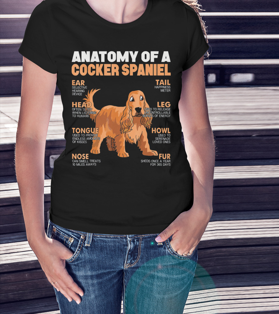 ANATOMY OF A COCKER SPANIEL HEAD TONGUE NOSE EAR FUR LEG TAIL HOWL T-Shirt