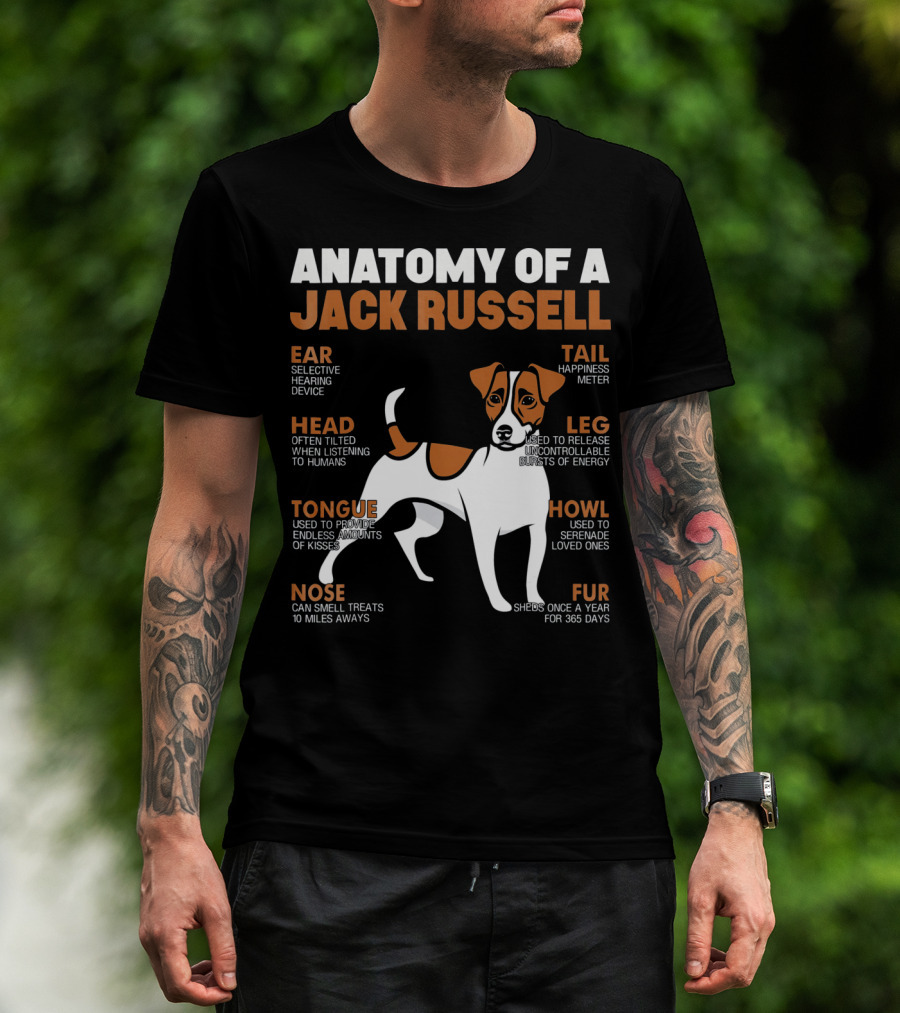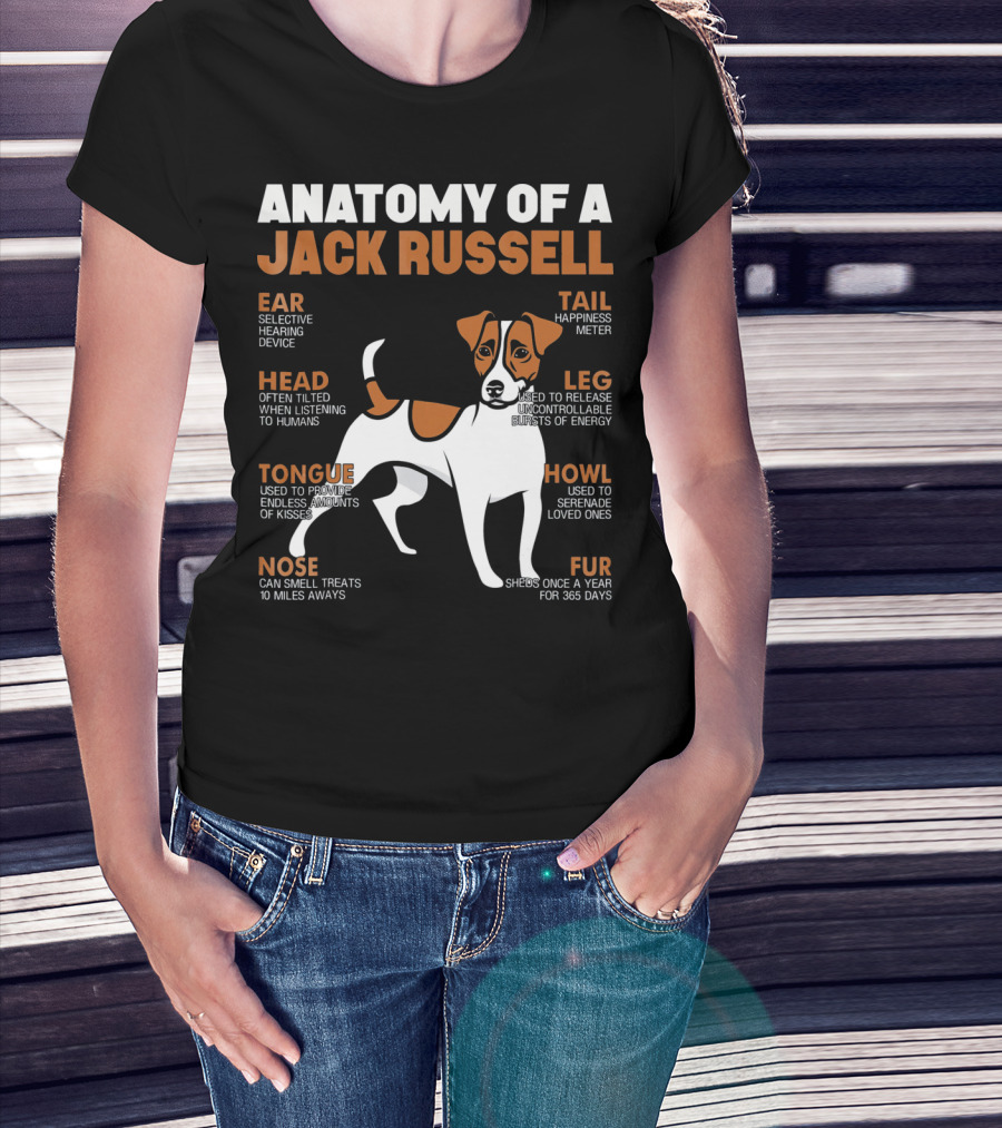 The Anatomy Of A Jack Russell Ear Selective Hearing Head Happiness Leg Bursts Nose Smell Tongue Endless Howl Serenade Fur T-shirt is designed for everyday wear and a consistent fit. Fabric is pre-shrunk ring-spun cotton with durable stitching. See the size chart below for exact measurements.