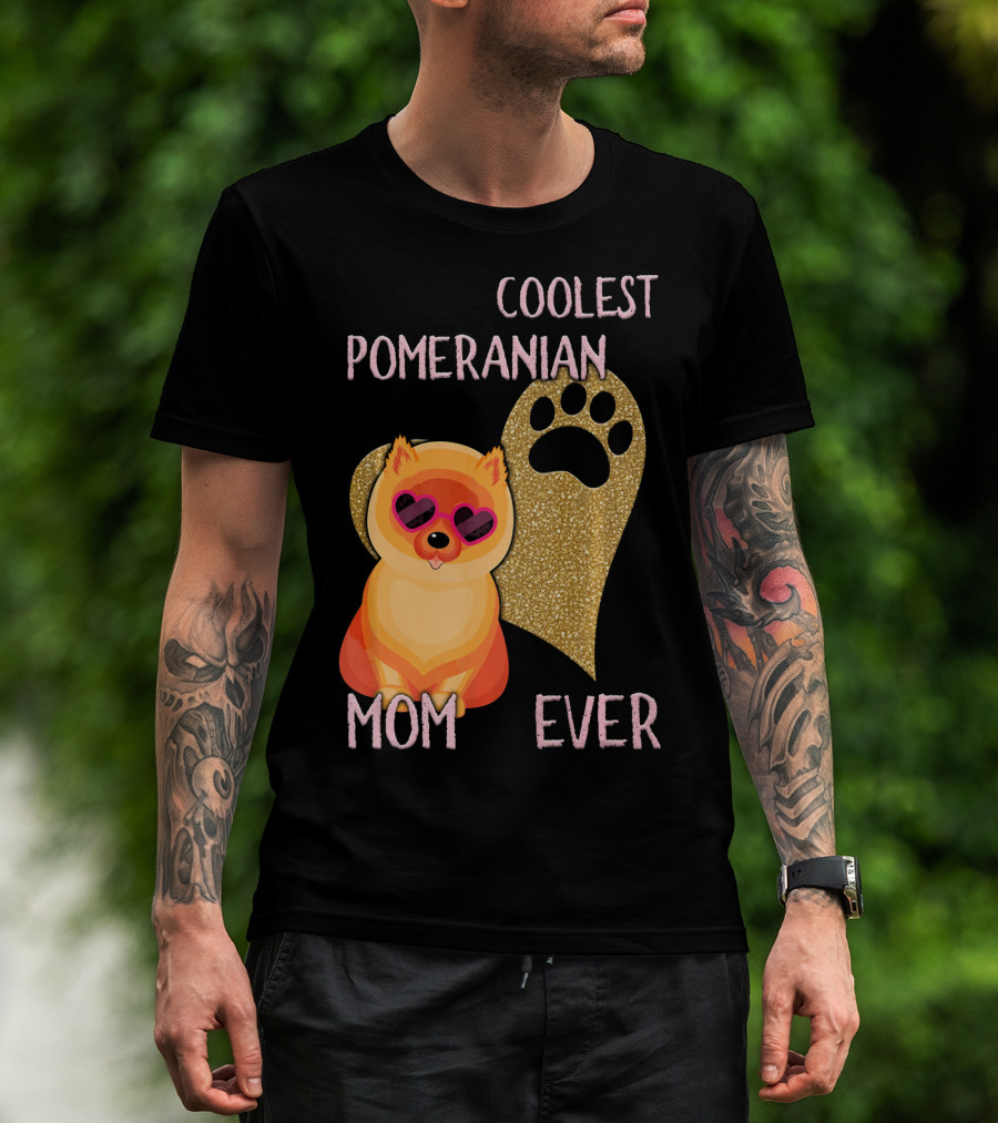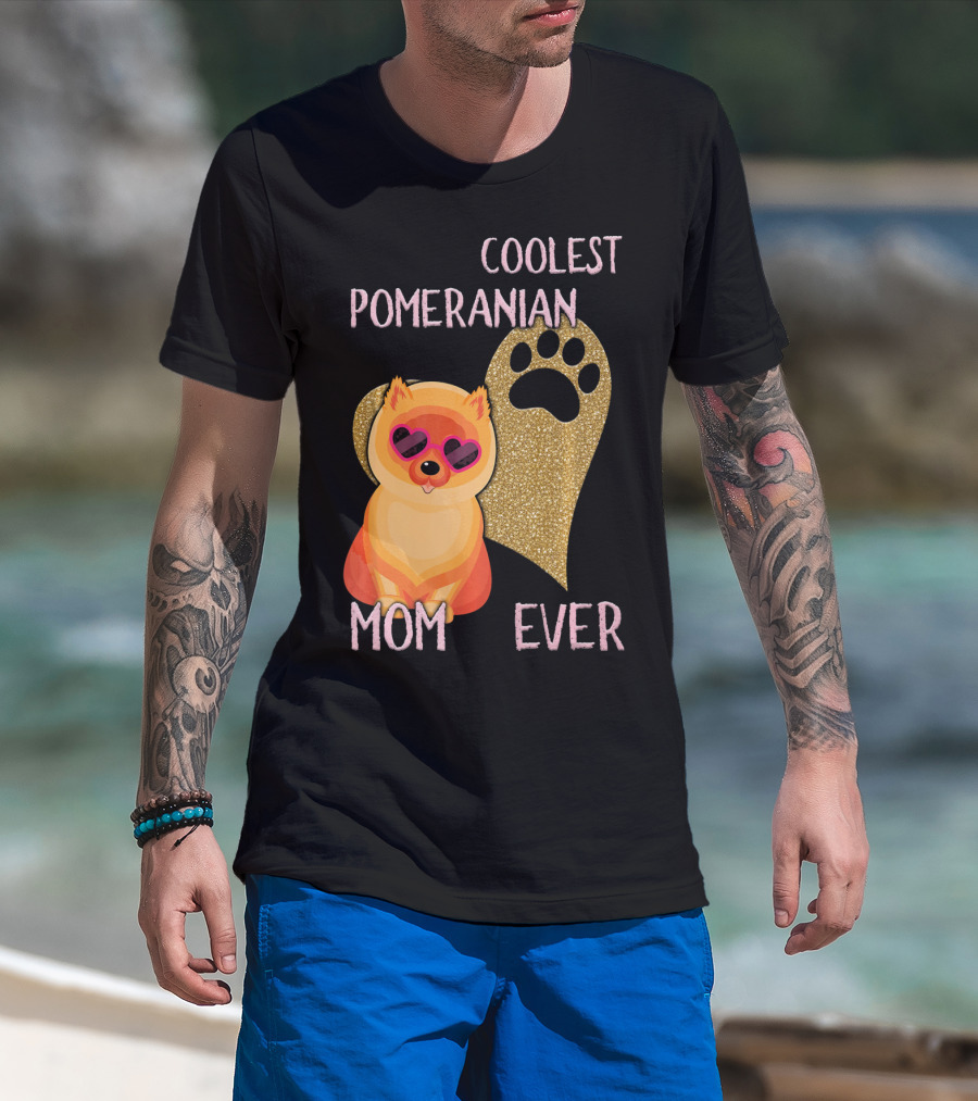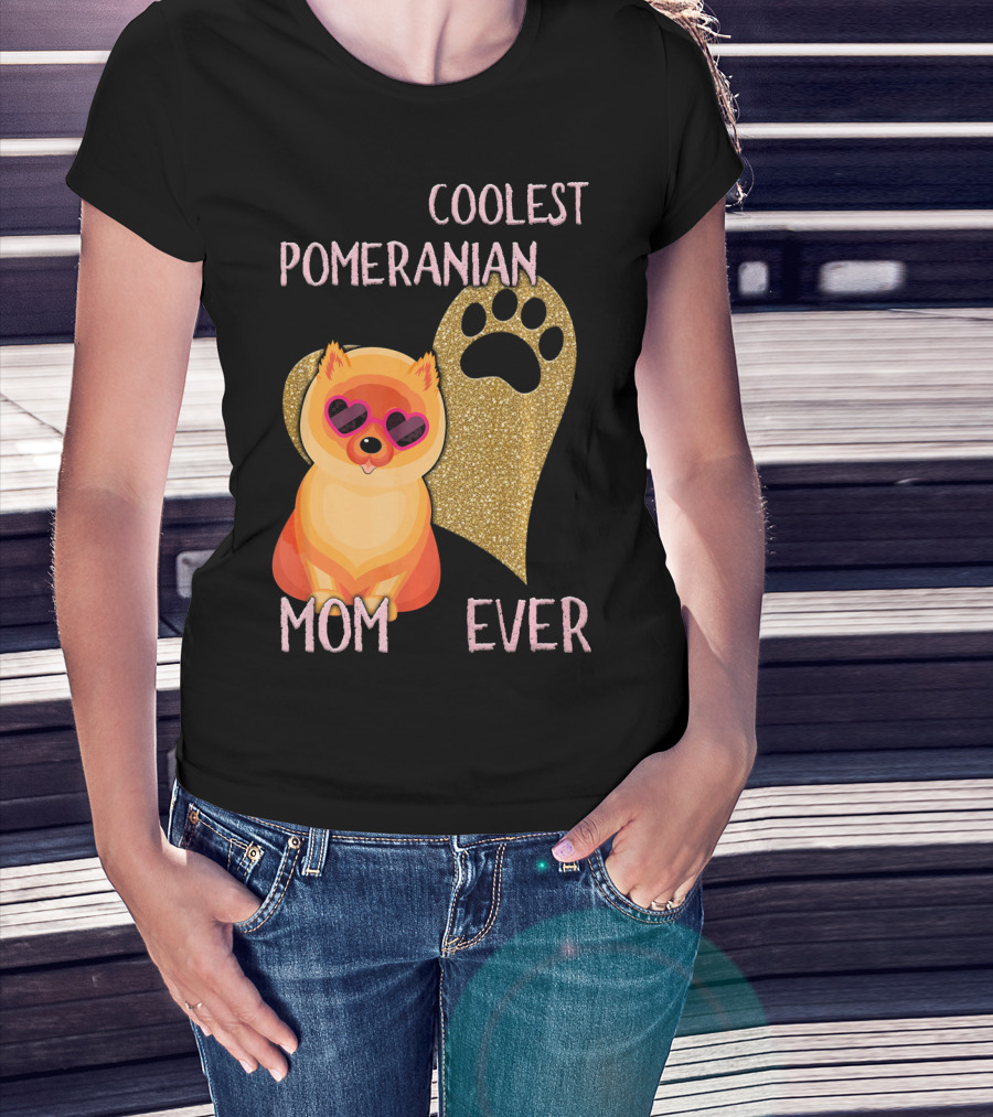 Coolest Pomeranian Mom Ever With Heart Paw Print And Sunglasses T-Shirt