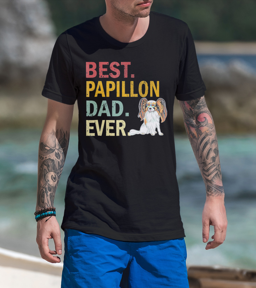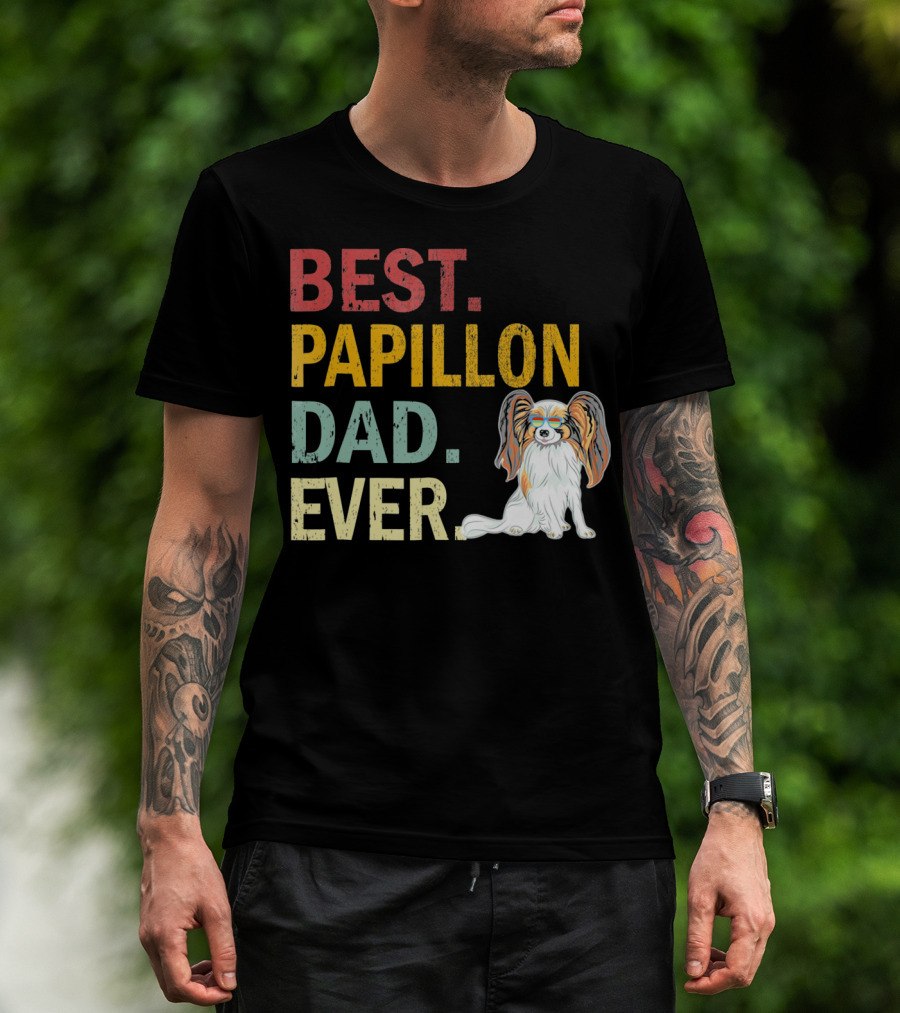 The Best Papillon Dad Ever T-shirt is designed for everyday wear and a consistent fit. Fabric is pre-shrunk ring-spun cotton with durable stitching. See the size chart below for exact measurements.