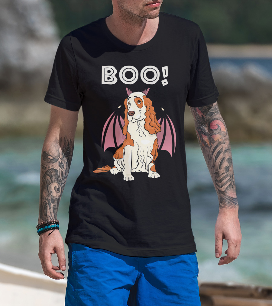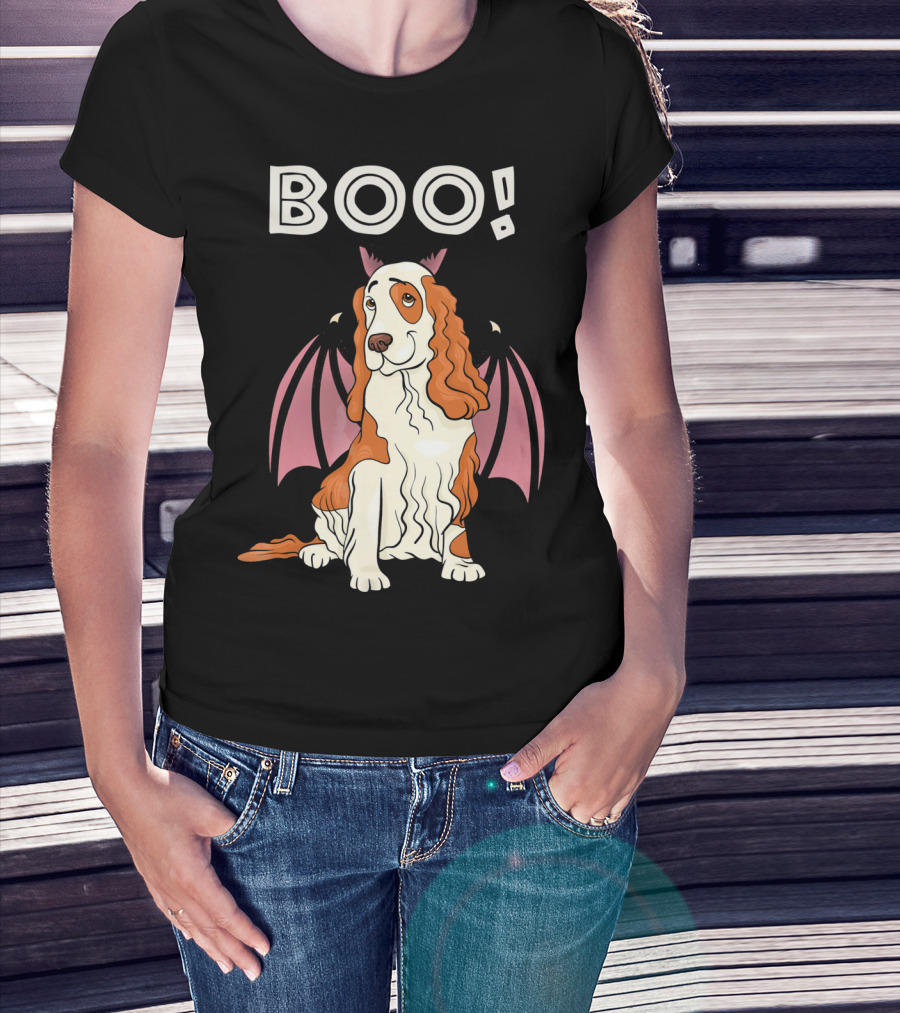 Boo Cocker Spaniel With Bat Wings Halloween T-Shirt