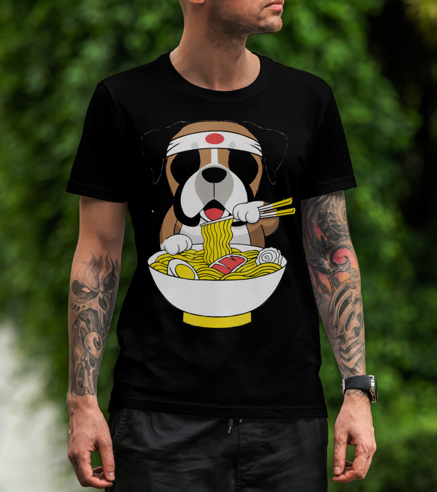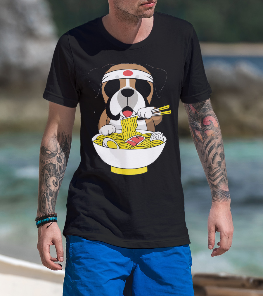 Boxer Dog Eating Japanese Ramen With Chopsticks In Funny T-Shirt