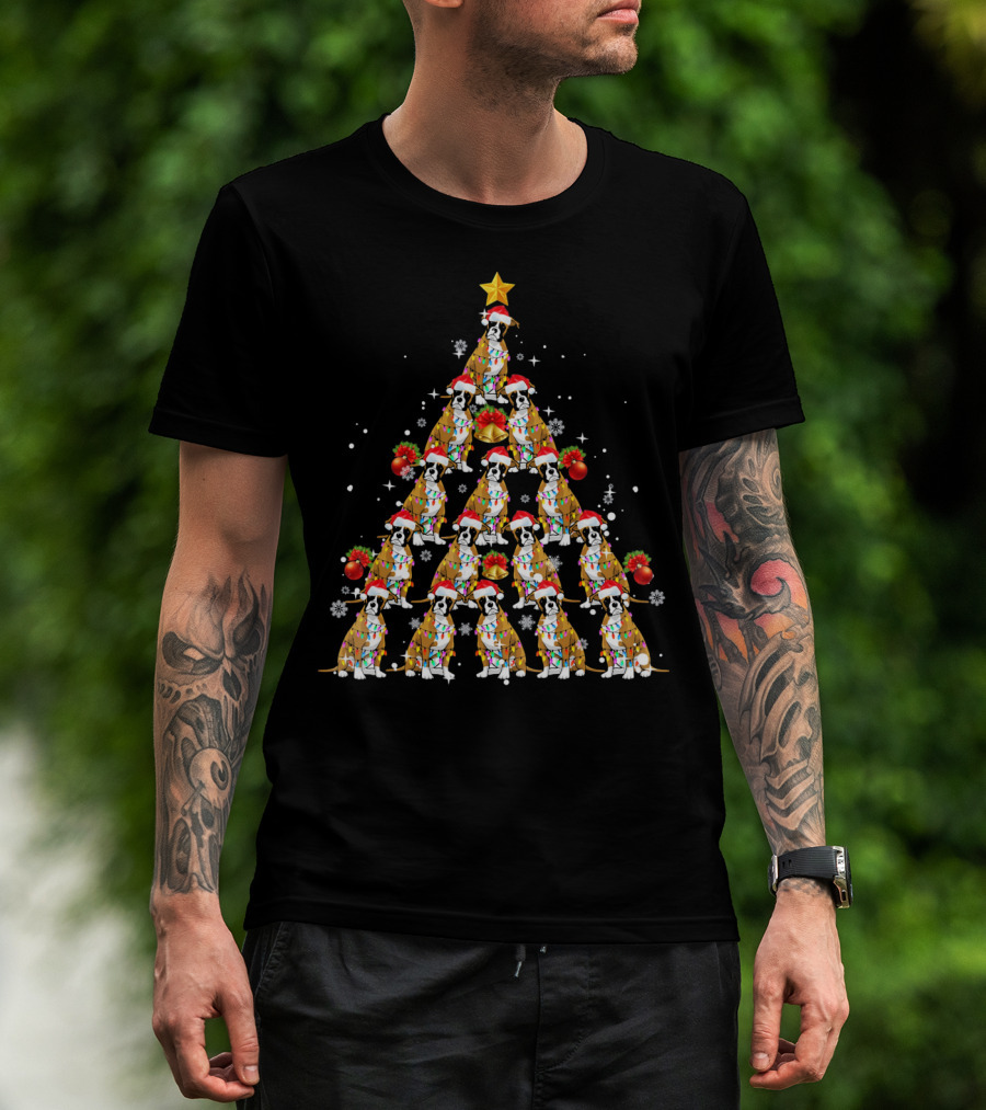 Boxer Dog Christmas Tree With Santa Hats And Lights T-Shirt