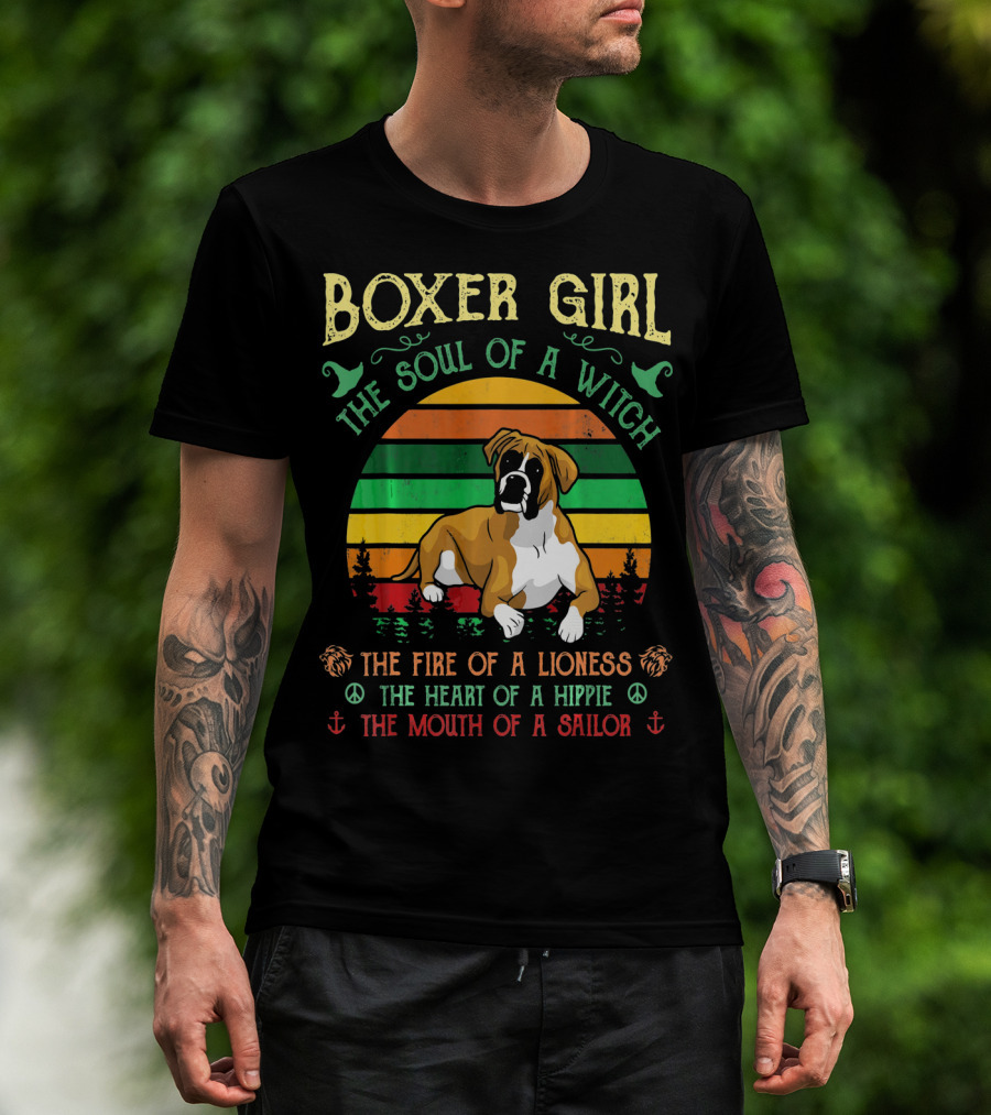 The Boxer Girl The Soul of A Witch The Fire of a Lioness The Heart of a Hippie The Mouth of a Sailor T-shirt is designed for everyday wear and a consistent fit. Fabric is pre-shrunk ring-spun cotton with durable stitching. See the size chart below for exact measurements.