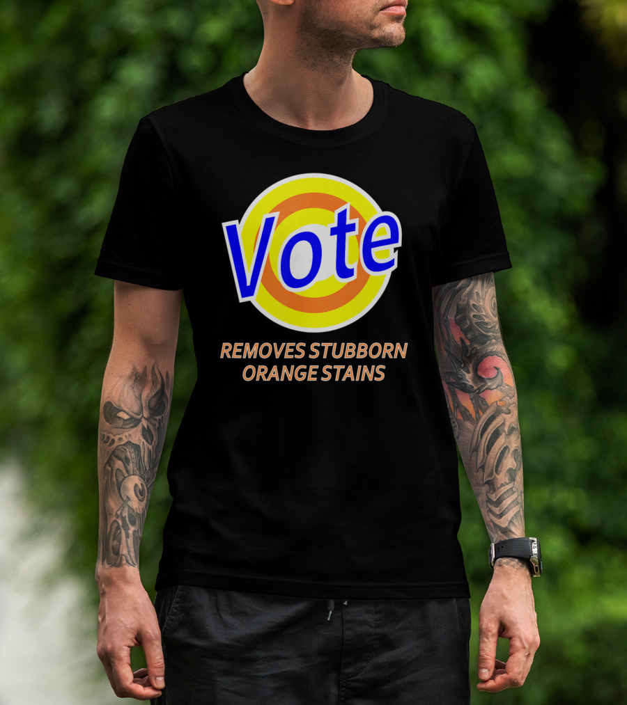 The Vote Removes Stubborn Orange Stains T-shirt is designed for everyday wear and a consistent fit. Fabric is pre-shrunk ring-spun cotton with durable stitching. See the size chart below for exact measurements.