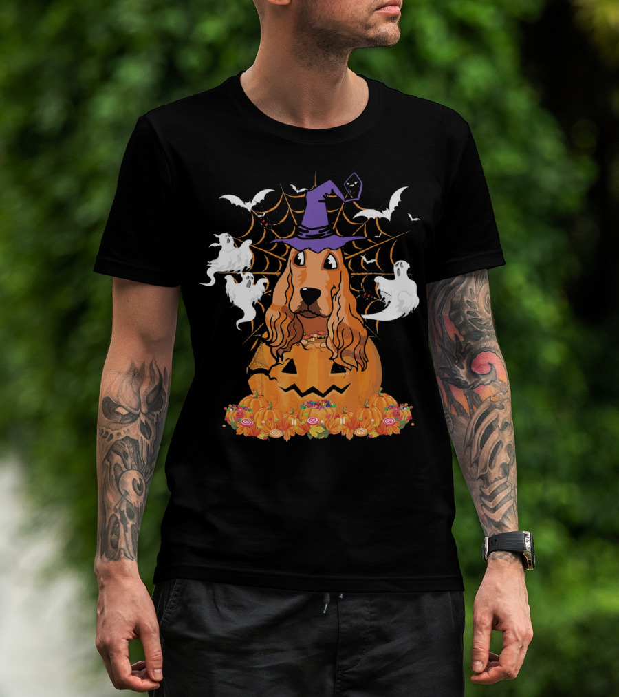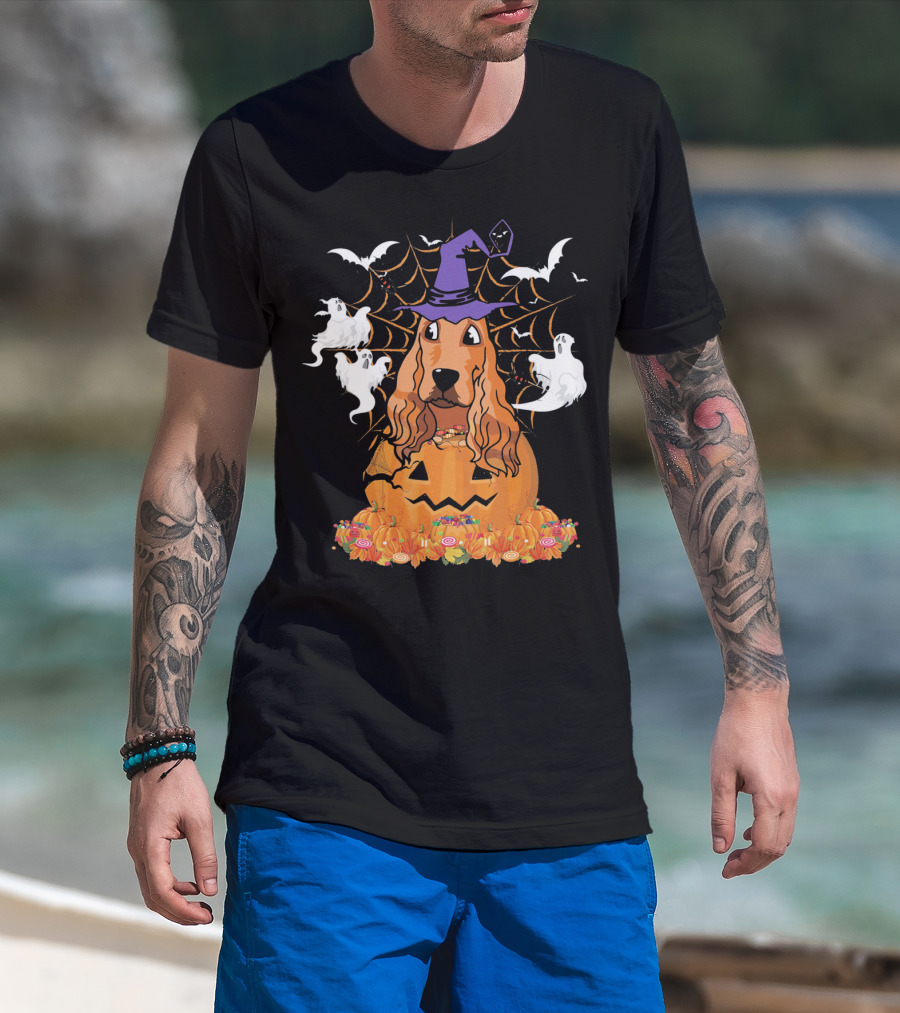 Cavalier King Charles Spaniel Halloween Pumpkin Ghosts And Witch Hat T-Shirt