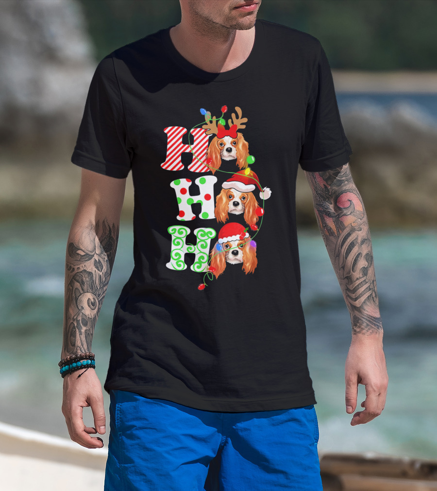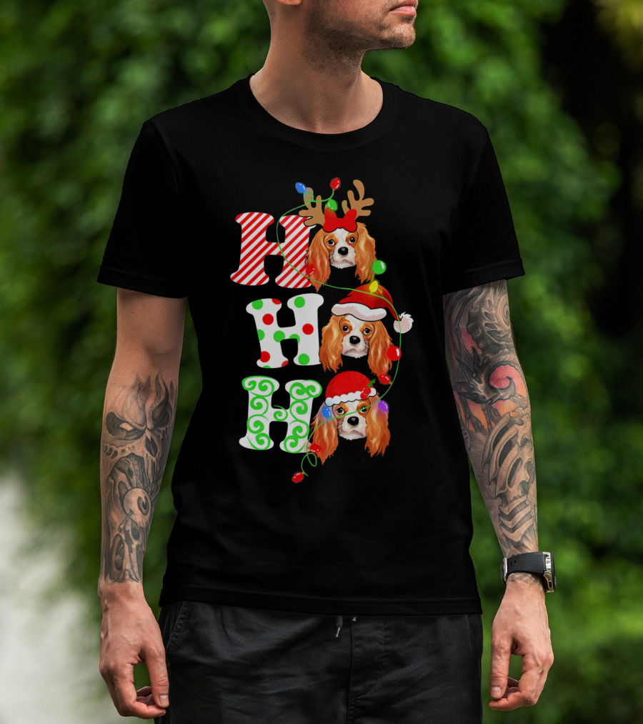 Cavalier King Charles Spaniel Santa Ho Ho Christmas Lights T-Shirt