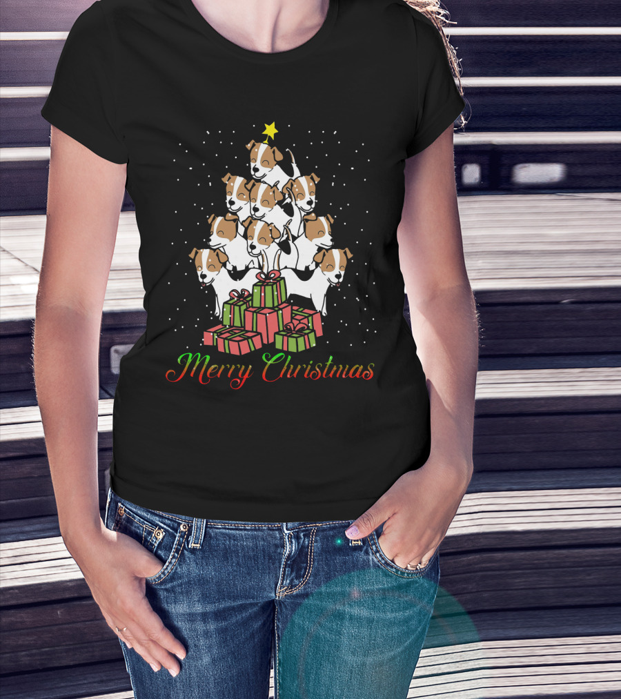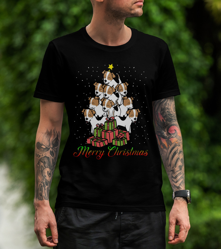 Merry Christmas Jack Russell Terrier Tree With Gifts T-Shirt
