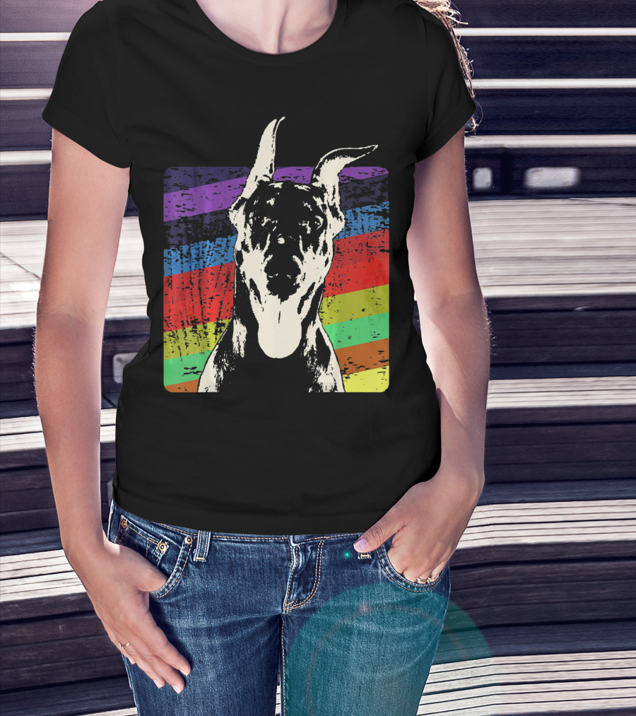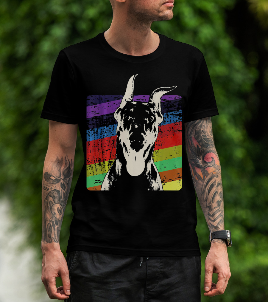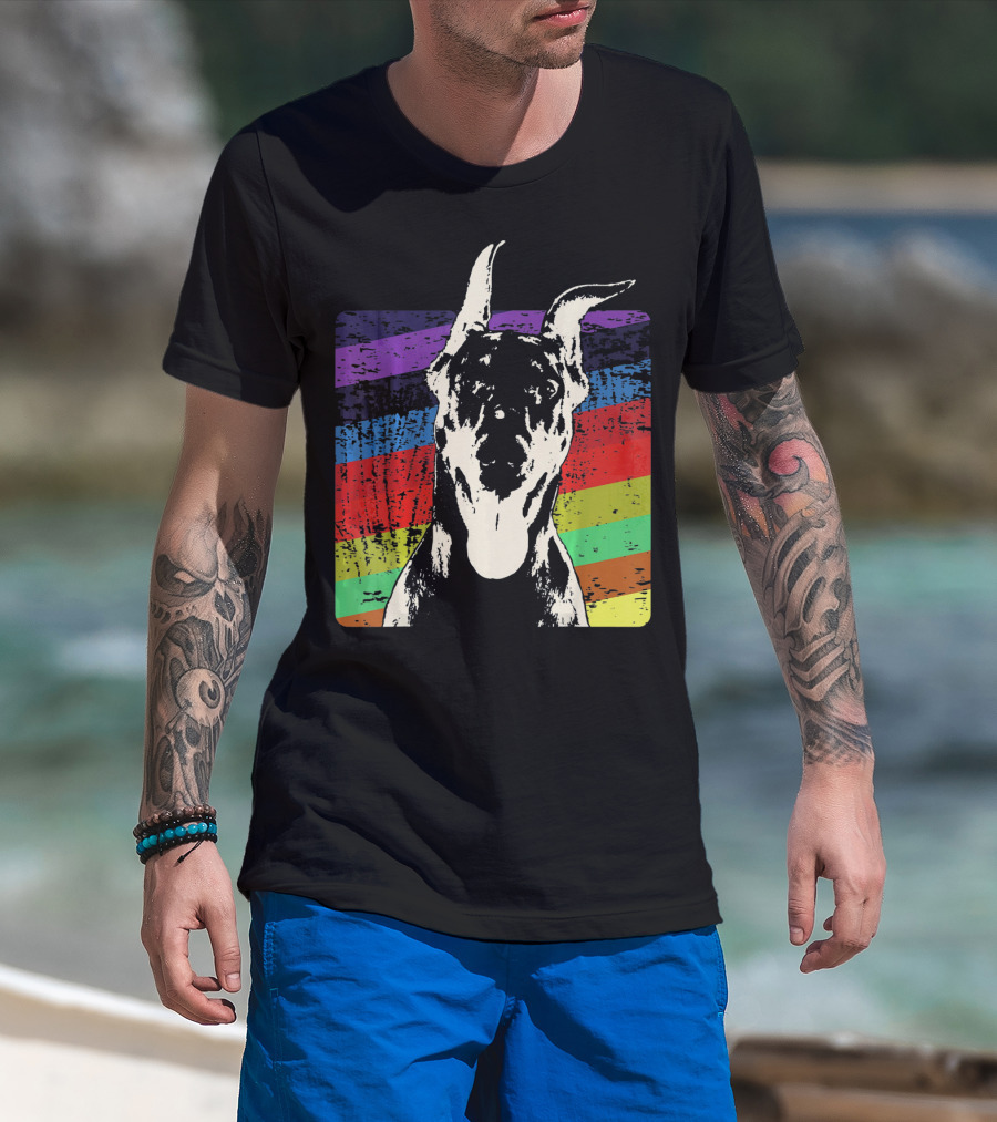 Classic Vintage Doberman Pinscher Rainbow Stripes Retro T-Shirt
