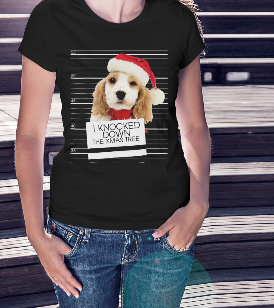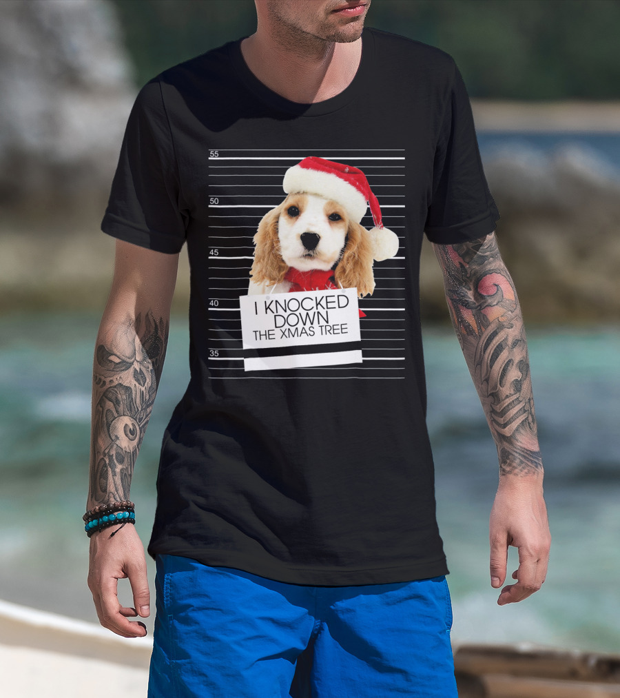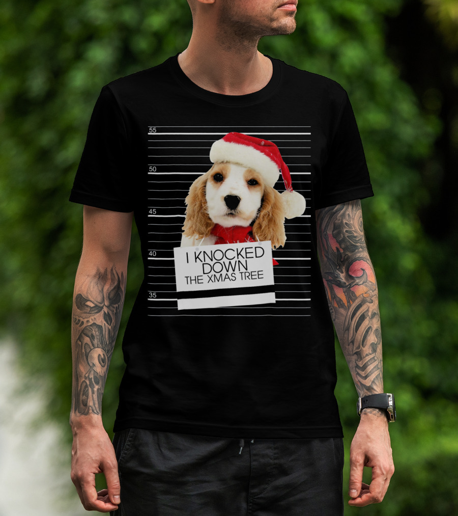 Cocker Spaniel Dog In Santa Hat Knocked Down The Xmas Tree T-Shirt
