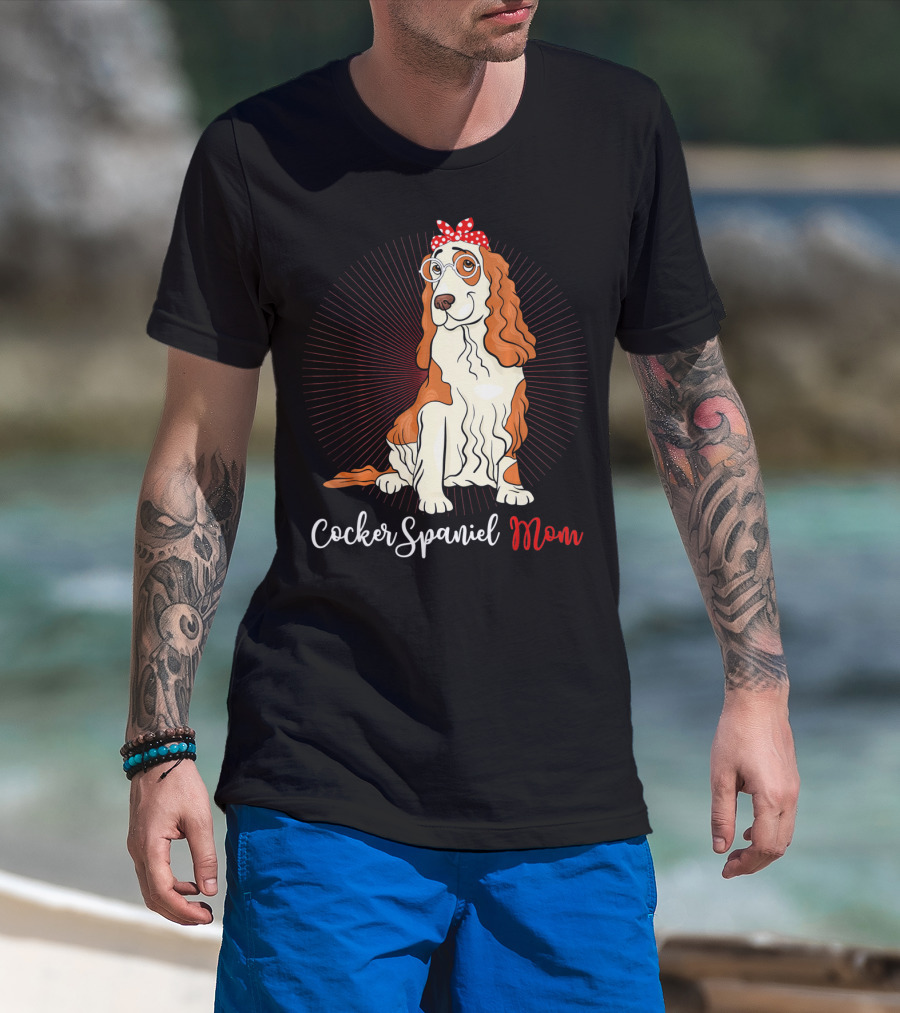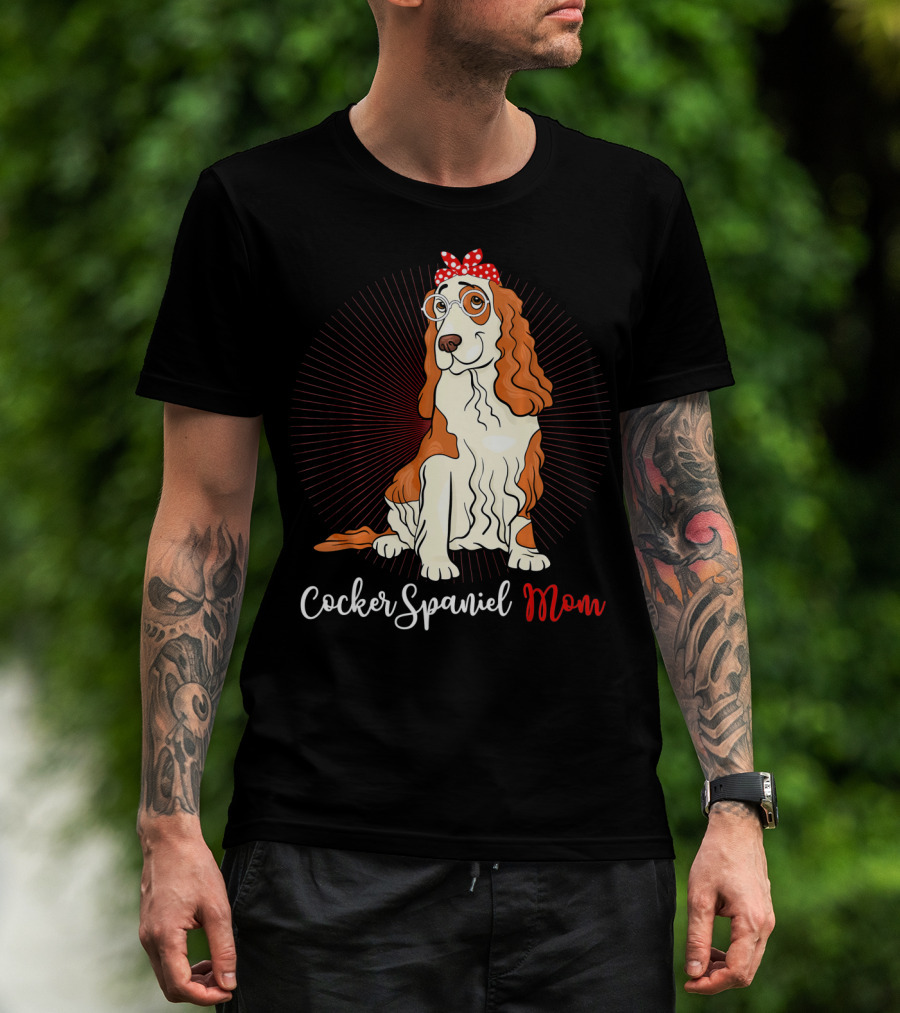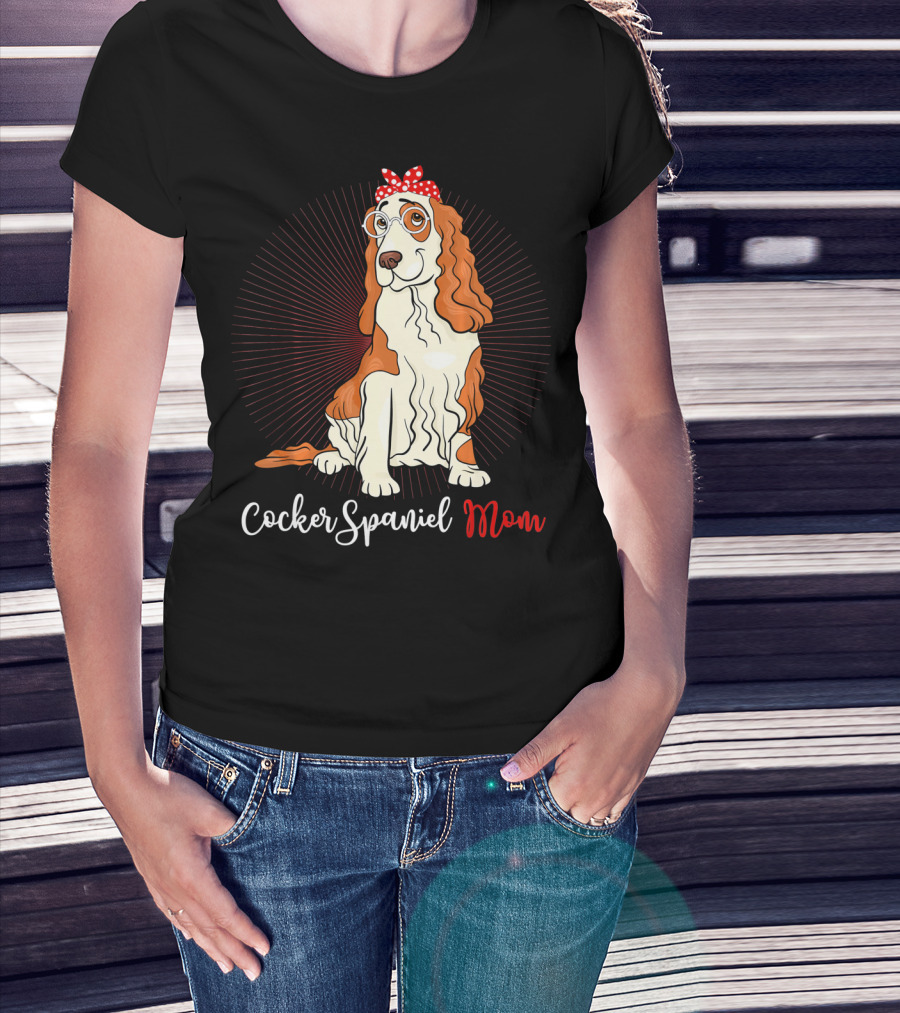 Cocker Spaniel Mom With Glasses And Red Polka Dot Bandana T-Shirt