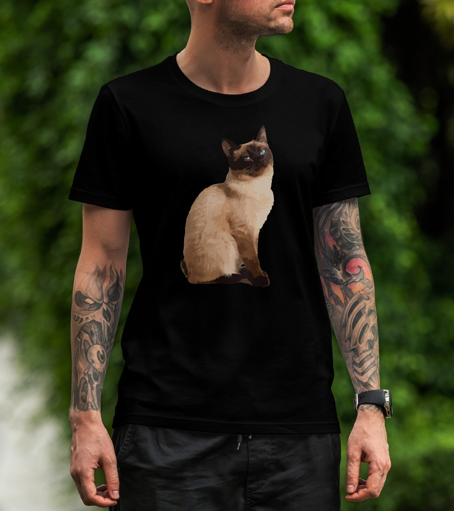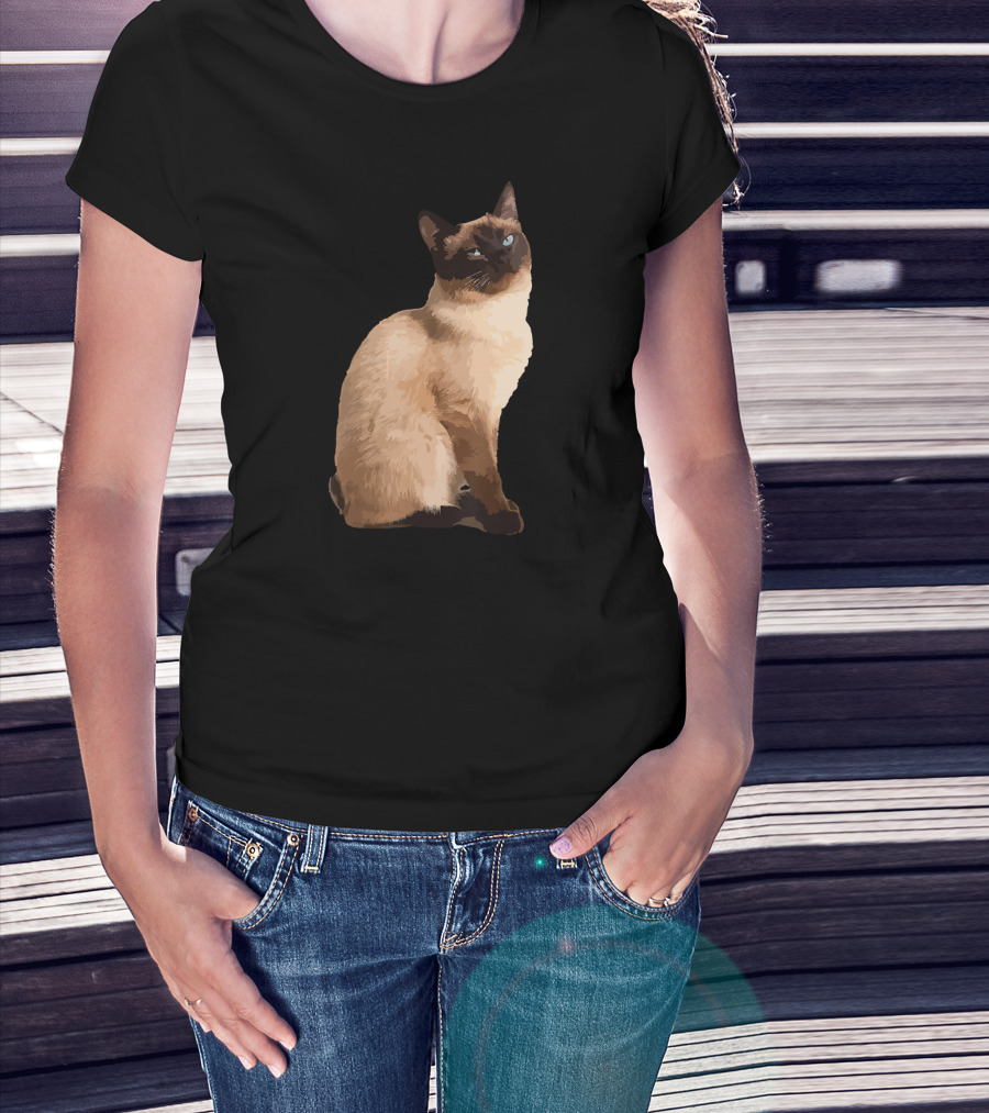 Siamese Cat Cute Siamese Cat Sitting Brown Fur Blue Eyes T-Shirt