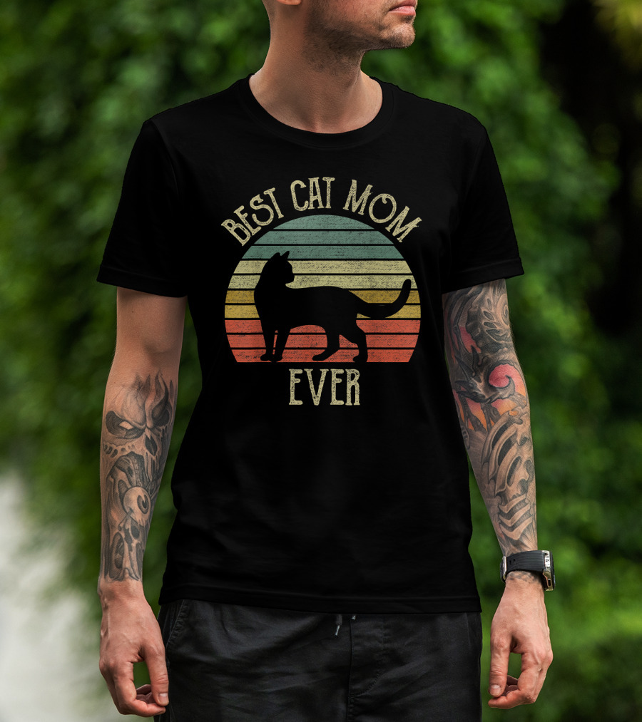 Vintage Best Cat Mom Ever Retro Stripes Cat Lovers T-Shirt