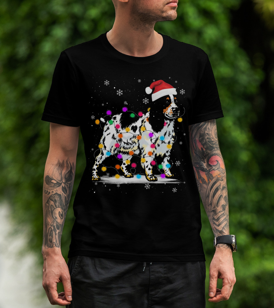 Cocker Spaniel Santa Hat Christmas Lights Snowflakes T-Shirt